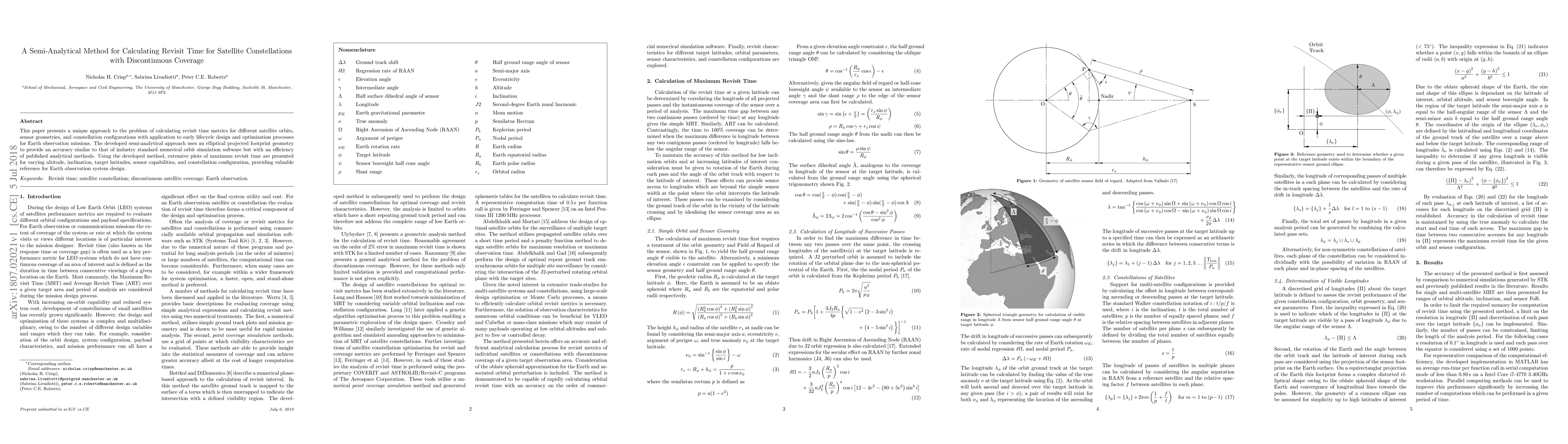 This paper presents a unique approach to the problem of calculating revisit time metrics for different satellite orbits, sensor geometries, and constellation configurations with application to early lifecycle design and optimisation processes for Earth observation missions. The developed semi-analytical approach uses an elliptical projected footprint geometry to provide an accuracy similar to that of industry standard numerical orbit simulation software but with an efficiency of published analytical methods. Using the developed method, extensive plots of maximum revisit time are presented for varying altitude, inclination, target latitudes, sensor capabilities, and constellation configuration, providing valuable reference for Earth observation system design.
