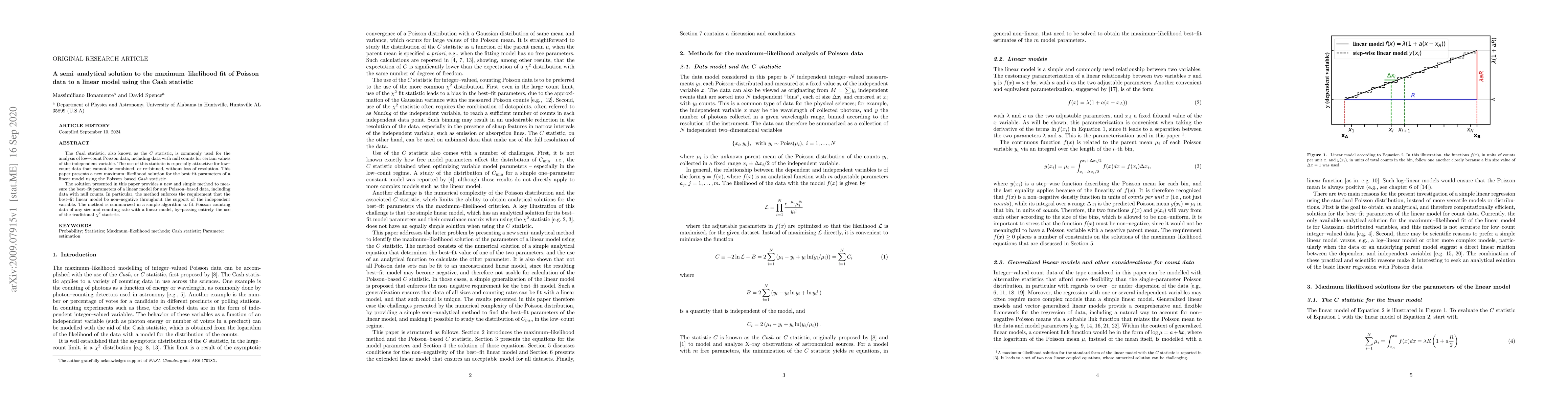 This paper introduces a semi-analytical solution for fitting linear models to Poisson data using the Cash statistic, offering a straightforward method to determine best-fit parameters without negative values, and bypassing the traditional $\chi^2$ statistic. The method is particularly useful for low-count data that cannot be re-binned without losing resolution.