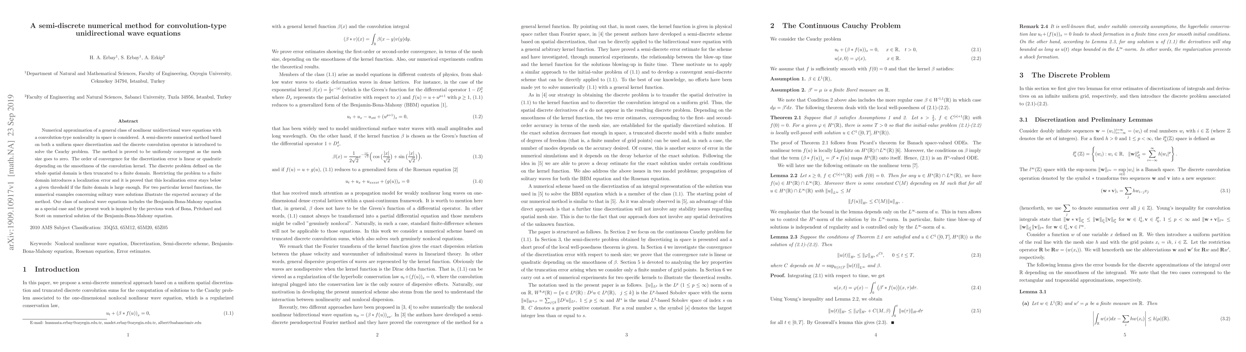 This paper presents a semi-discrete numerical method for solving nonlinear unidirectional wave equations with convolution-type nonlocality. The method achieves uniform convergence and demonstrates linear or quadratic convergence depending on kernel smoothness, with a manageable localization error for finite domain truncations.