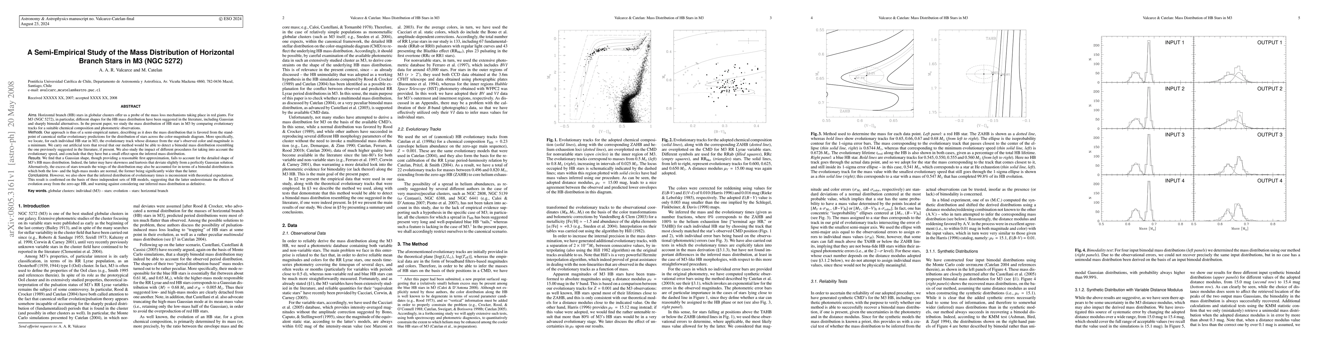 Researchers studied the mass distribution of horizontal branch stars in M3 using evolutionary tracks and photometric observations, finding that the actual distribution deviates from a simple Gaussian shape, with possible skewness and kurtosis.