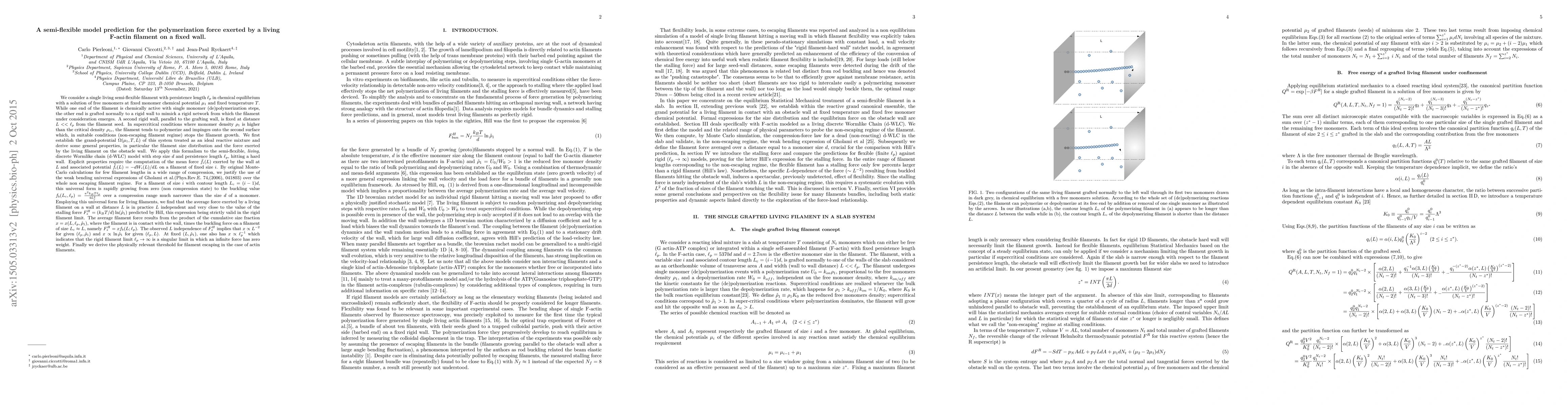 This paper develops a semi-flexible model to predict the polymerization force exerted by a living F-actin filament on a fixed wall, showing that the average force is nearly independent of the wall distance and closely aligns with predictions for rigid filaments. The study employs Monte-Carlo calculations to validate universal bending expressions and discusses the implications of these findings for the filament model.