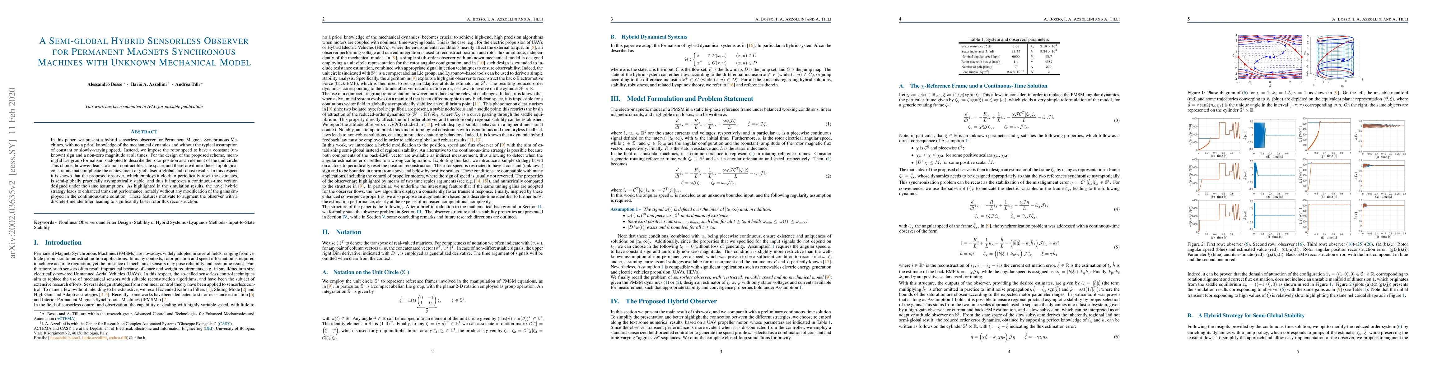 In this paper, we present a hybrid sensorless observer for Permanent Magnets Synchronous Machines, with no a priori knowledge of the mechanical dynamics and without the typical assumption of constant or slowly-varying speed. Instead, we impose the rotor speed to have a constant (unknown) sign and a non-zero magnitude at all times. For the design of the proposed scheme, meaningful Lie group formalism is adopted to describe the rotor position as an element of the unit circle. This choice, however, leads to a non-contractible state space, and therefore it introduces topological constraints that complicate the achievement of global/semi-global and robust results. In this respect it is shown that the proposed observer, which employs a clock to periodically reset the estimates, is semi-globally practically asymptotically stable, and thus it improves a continuous-time version designed under the same assumptions. As highlighted in the simulation results, the novel hybrid strategy leads to enhanced transient performance, notably without any modification of the gains employed in the continuous-time solution. These features motivate to augment the observer with a discrete-time identifier, leading to significantly faster rotor flux reconstruction.