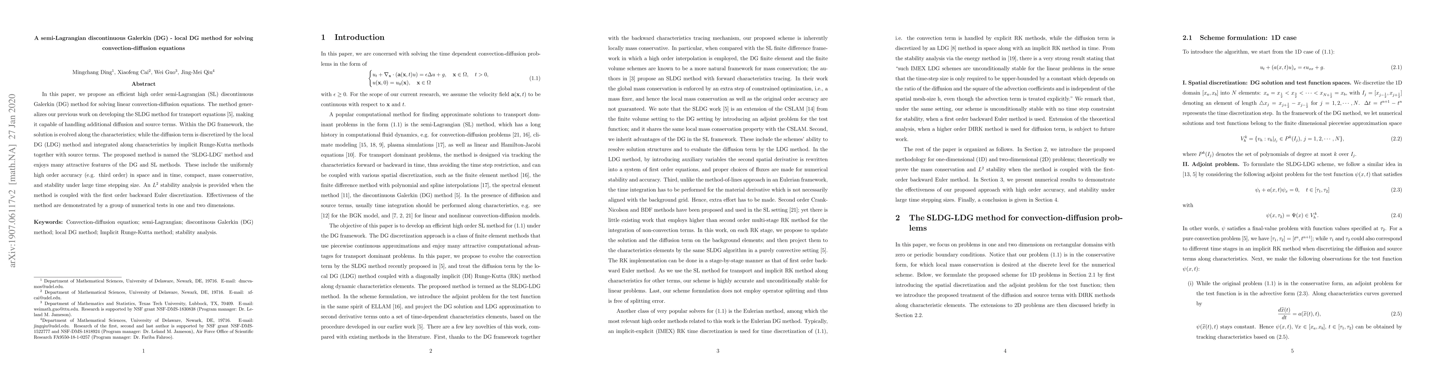 This paper proposes a high-order semi-Lagrangian discontinuous Galerkin (SLDG-LDG) method for solving convection-diffusion equations, extending previous work to handle diffusion and source terms. It combines the SLDG method with local DG for diffusion and implicit Runge-Kutta methods for characteristics, achieving third-order accuracy and stability under large time steps.
