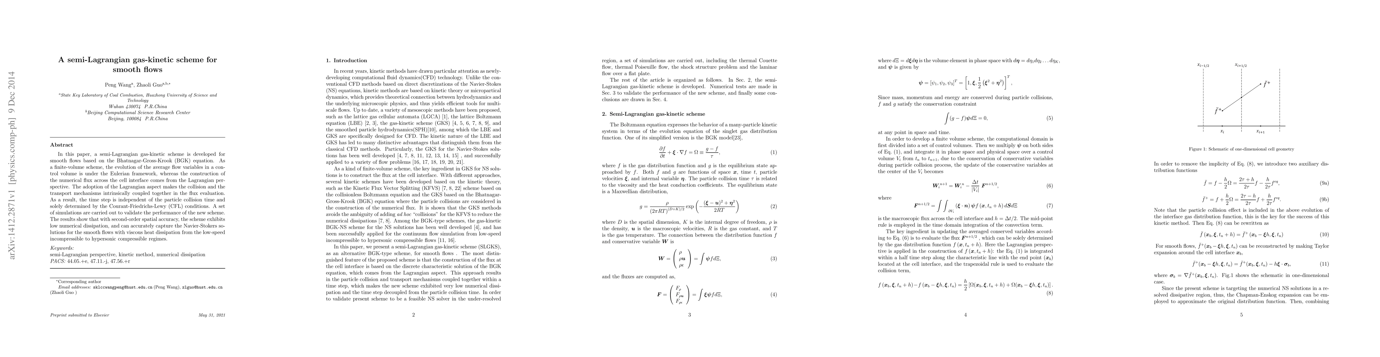 This paper introduces a semi-Lagrangian gas-kinetic scheme based on the BGK equation for smooth flows, combining Eulerian and Lagrangian perspectives to couple collision and transport mechanisms. The scheme demonstrates low numerical dissipation, second-order spatial accuracy, and accurate Navier-Stokes solutions across various flow regimes.