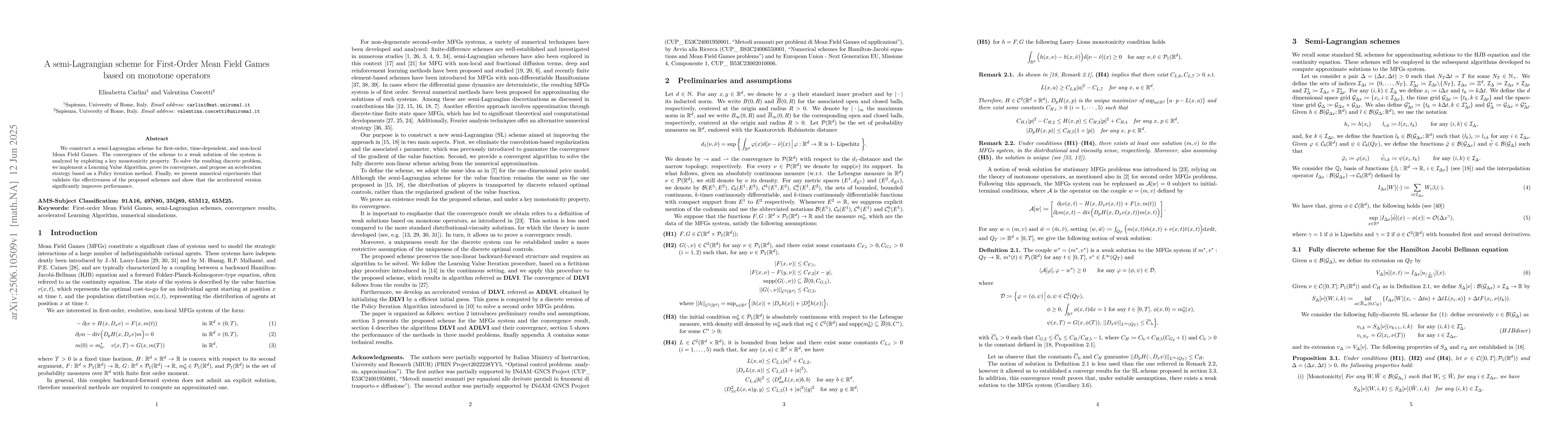 We construct a semi-Lagrangian scheme for first-order, time-dependent, and non-local Mean Field Games. The convergence of the scheme to a weak solution of the system is analyzed by exploiting a key monotonicity property. To solve the resulting discrete problem, we implement a Learning Value Algorithm, prove its convergence, and propose an acceleration strategy based on a Policy iteration method. Finally, we present numerical experiments that validate the effectiveness of the proposed schemes and show that the accelerated version significantly improves performance.