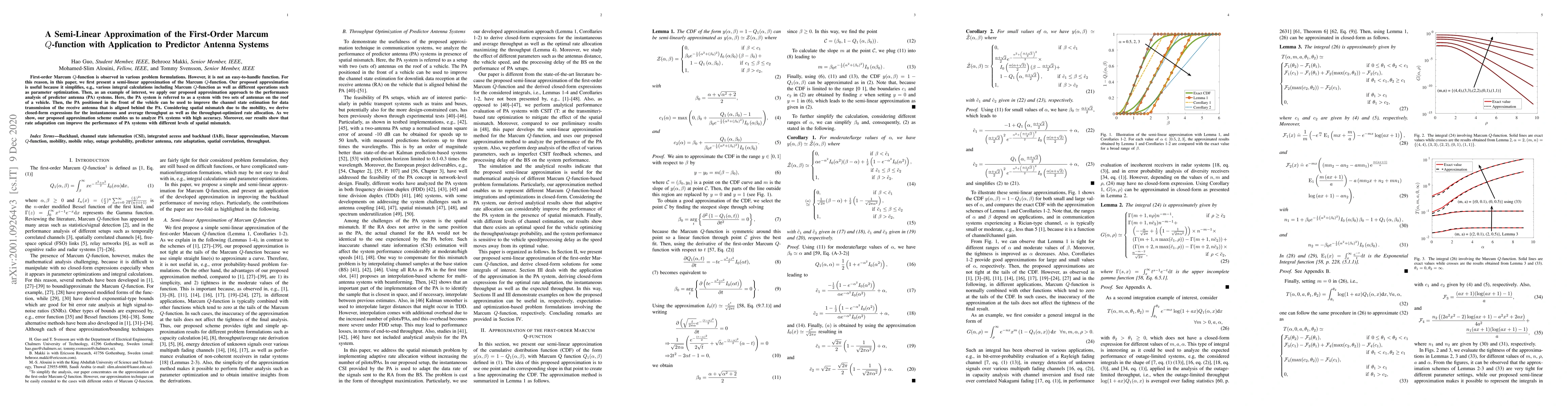 First-order Marcum $Q$-function is observed in various problem formulations. However, it is not an easy-to-handle function. For this reason, in this paper, we first present a semi-linear approximation of the Marcum $Q$-function. Our proposed approximation is useful because it simplifies, e.g., various integral calculations including Marcum $Q$-function as well as different operations such as parameter optimization. Then, as an example of interest, we apply our proposed approximation approach to the performance analysis of predictor antenna (PA) systems. Here, the PA system is referred to as a system with two sets of antennas on the roof of a vehicle. Then, the PA positioned in the front of the vehicle can be used to improve the channel state estimation for data transmission of the receive antenna that is aligned behind the PA. Considering spatial mismatch due to the mobility, we derive closed-form expressions for the instantaneous and average throughput as well as the throughput-optimized rate allocation. As we show, our proposed approximation scheme enables us to analyze PA systems with high accuracy. Moreover, our results show that rate adaptation can improve the performance of PA systems with different levels of spatial mismatch.