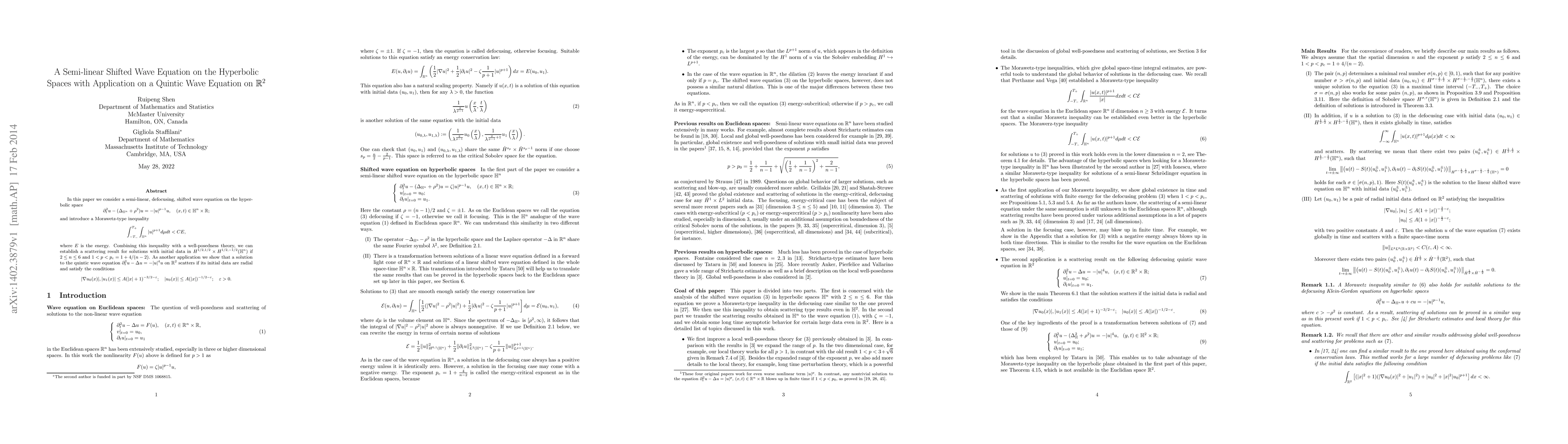 In this paper we consider a semi-linear, defocusing, shifted wave equation on the hyperbolic space \[ \partial_t^2 u - (\Delta_{{\mathbb H}^n} + \rho^2) u = - |u|^{p-1} u, \quad (x,t)\in {\mathbb H}^n \times {\mathbb R}; \] and introduce a Morawetz-type inequality \[ \int_{-T_-}^{T_+} \int_{{\mathbb H}^n} |u|^{p+1} d\mu dt < C E, \] where $E$ is the energy. Combining this inequality with a well-posedness theory, we can establish a scattering result for solutions with initial data in $H^{1/2,1/2} \times H^{1/2,-1/2}({\mathbb H}^n)$ if $2 \leq n \leq 6$ and $1