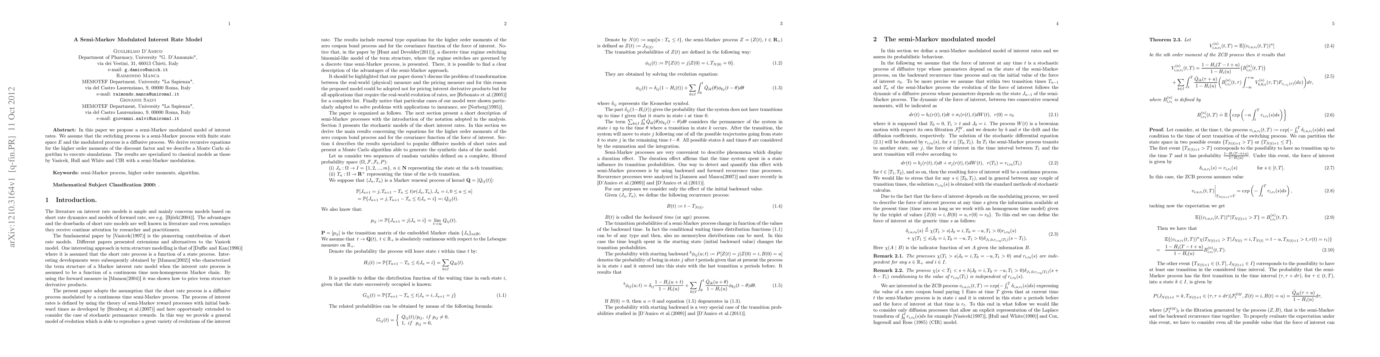 Researchers propose a new interest rate model that combines semi-Markov switching with a diffusive process, enabling simulations of classical models like Vasicek and CIR.