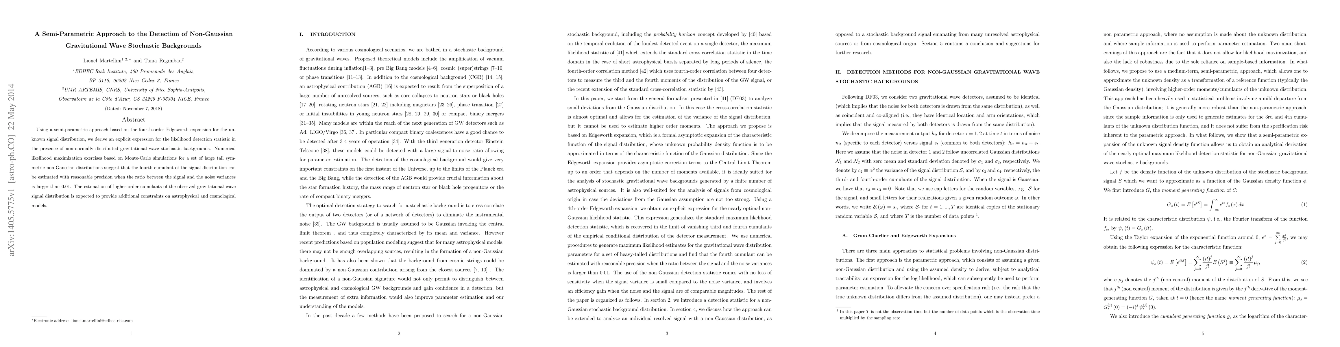 Using a semi-parametric approach based on the fourth-order Edgeworth expansion for the unknown signal distribution, we derive an explicit expression for the likelihood detection statistic in the presence of non-normally distributed gravitational wave stochastic backgrounds. Numerical likelihood maximization exercises based on Monte-Carlo simulations for a set of large tail symmetric non-Gaussian distributions suggest that the fourth cumulant of the signal distribution can be estimated with reasonable precision when the ratio between the signal and the noise variances is larger than 0.01. The estimation of higher-order cumulants of the observed gravitational wave signal distribution is expected to provide additional constraints on astrophysical and cosmological models.