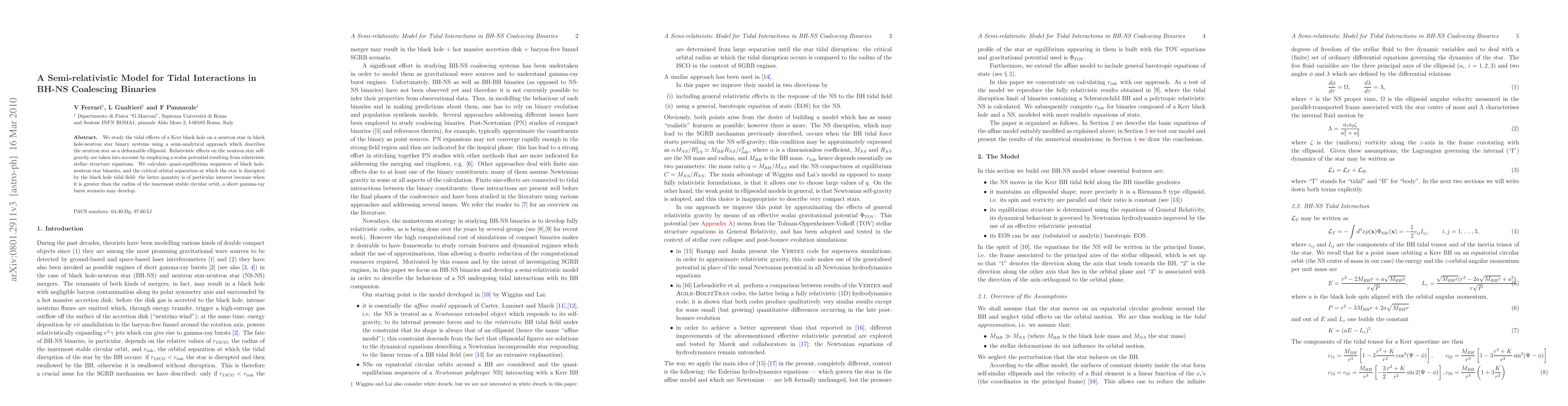 We study the tidal effects of a Kerr black hole on a neutron star in black hole-neutron star binary systems using a semi-analytical approach which describes the neutron star as a deformable ellipsoid. Relativistic effects on the neutron star self-gravity are taken into account by employing a scalar potential resulting from relativistic stellar structure equations. We calculate quasi-equilibrium sequences of black hole-neutron star binaries, and the critical orbital separation at which the star is disrupted by the black hole tidal field: the latter quantity is of particular interest because when it is greater than the radius of the innermost stable circular orbit, a short gamma-ray burst scenario may develop.