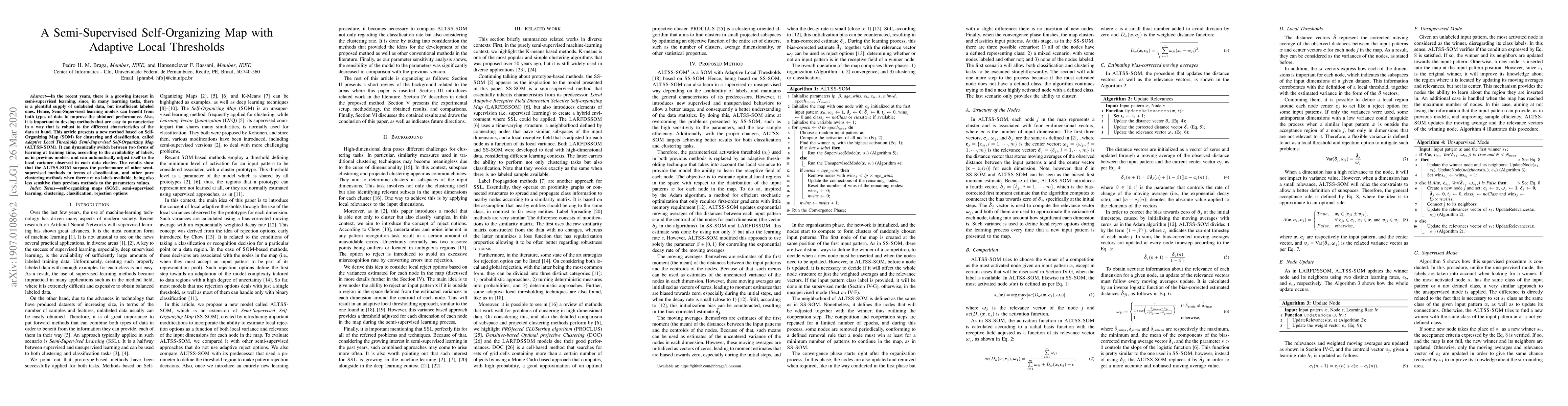 This paper introduces the Adaptive Local Thresholds Semi-Supervised Self-Organizing Map (ALTSS-SOM), a novel method for clustering and classification that leverages both labeled and unlabeled data. It dynamically adjusts to local variances and outperforms other semi-supervised and clustering methods in classification accuracy.