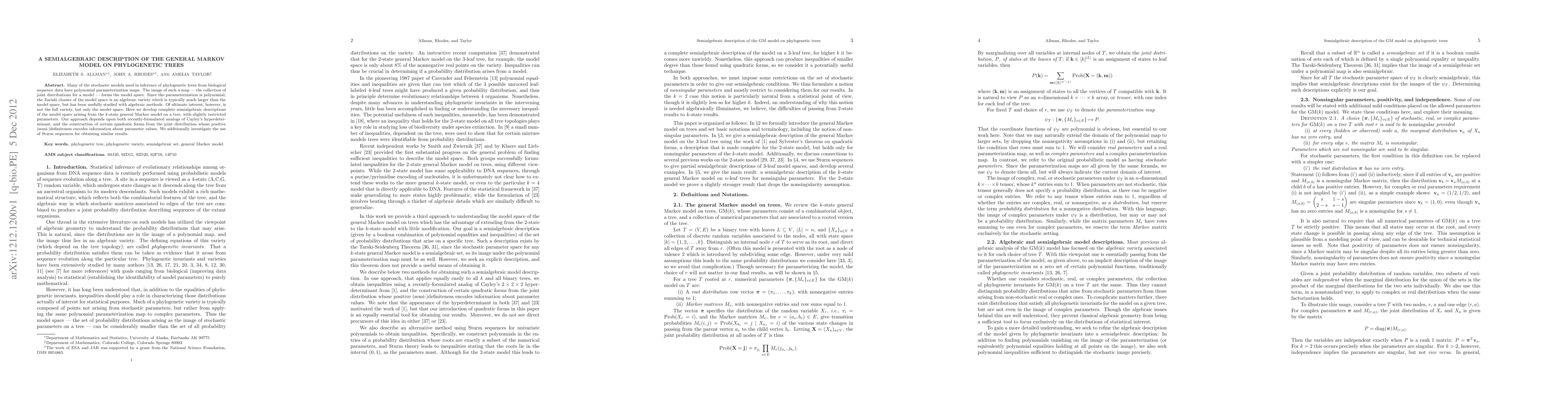 This paper provides a semialgebraic description of the general Markov model on phylogenetic trees, enabling more efficient inference from biological sequence data. It uses algebraic methods to analyze the model space, which is typically larger than the parameterization map.