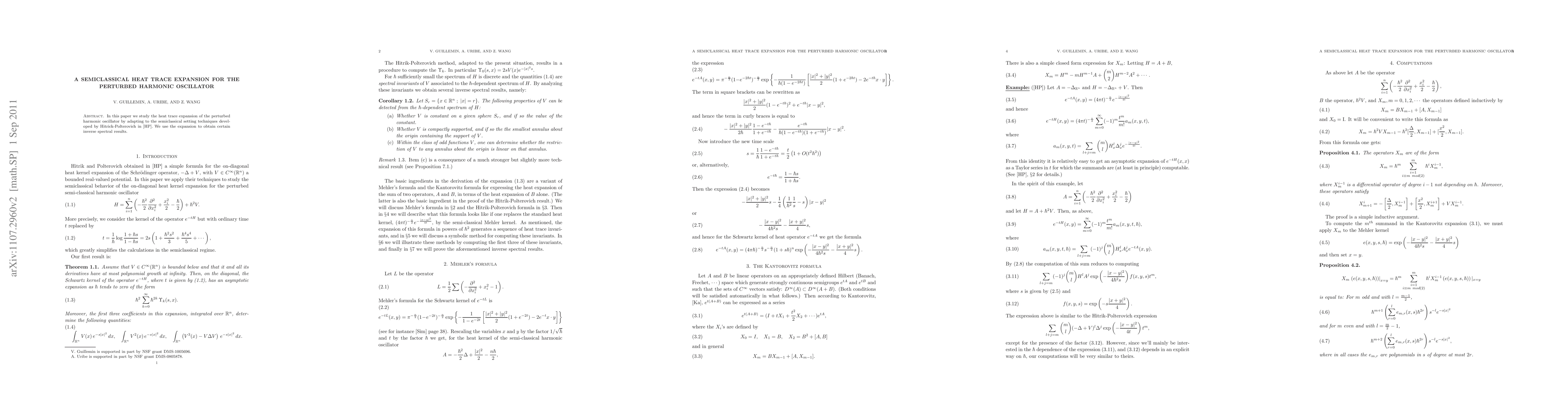 This paper explores a semiclassical heat trace expansion for perturbed harmonic oscillators, adapting techniques from Hitrik and Polterovich to derive inverse spectral results. The study provides insights into the behavior of perturbed systems through semiclassical analysis.