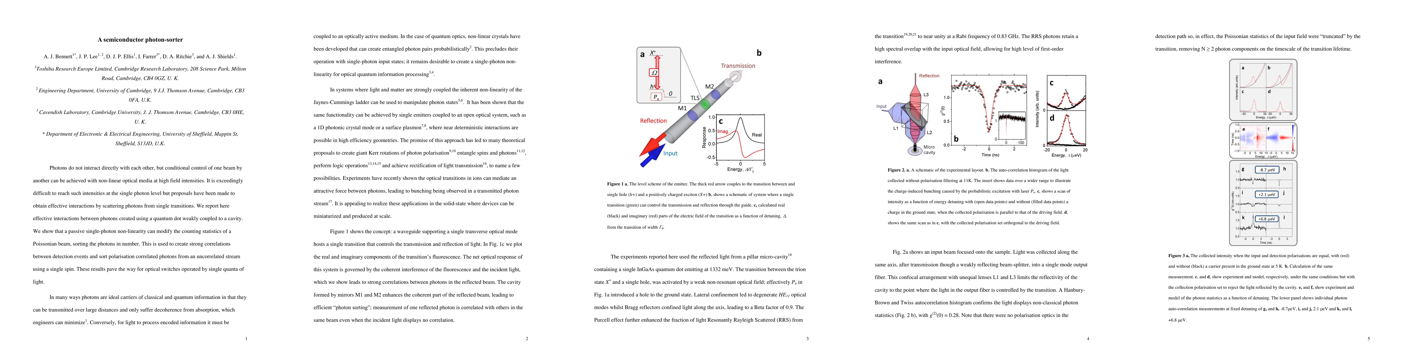 Photons do not interact directly with each other, but conditional control of one beam by another can be achieved with non-linear optical media at high field intensities. It is exceedingly difficult to reach such intensities at the single photon level but proposals have been made to obtain effective interactions by scattering photons from single transitions. We report here effective interactions between photons created using a quantum dot weakly coupled to a cavity. We show that a passive single-photon non-linearity can modify the counting statistics of a Poissonian beam, sorting the photons in number. This is used to create strong correlations between detection events and sort polarisation correlated photons from an uncorrelated stream using a single spin. These results pave the way for optical switches operated by single quanta of light.