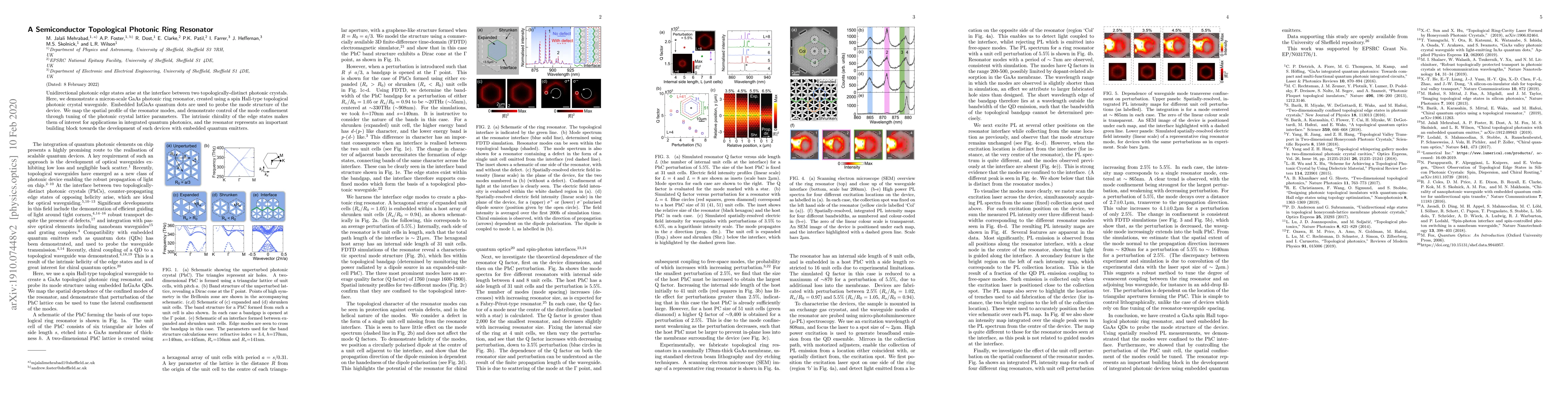 This paper demonstrates a micron-scale GaAs photonic ring resonator utilizing a topological photonic crystal waveguide, showing unidirectional photonic edge states and control over mode confinement. The embedded InGaAs quantum dots enable probing of the resonator’s mode structure, highlighting potential applications in integrated quantum photonics.