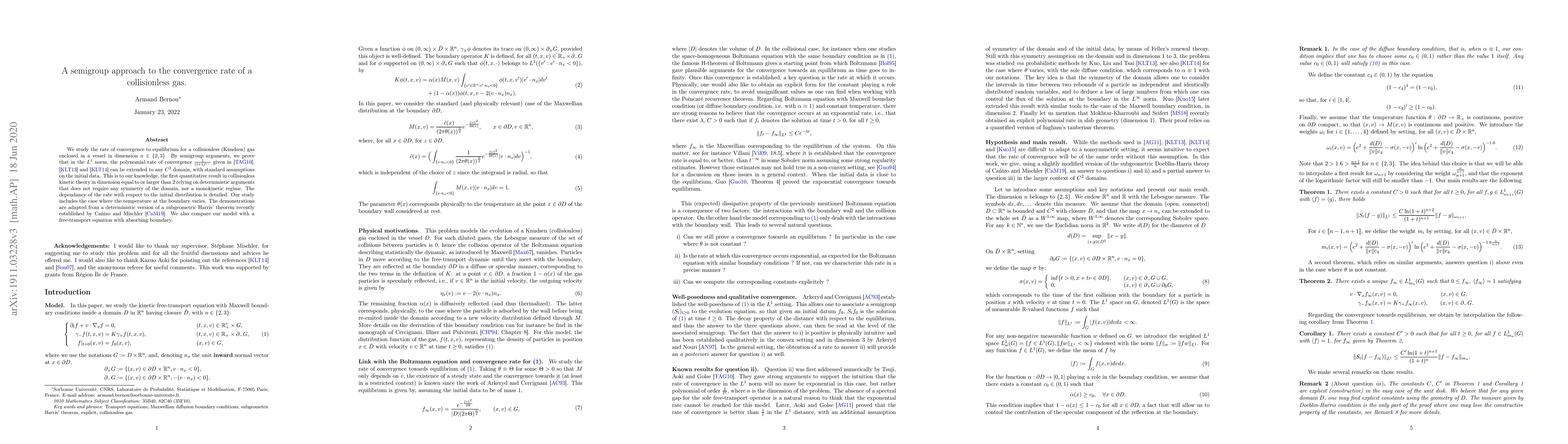 A semigroup approach proves a polynomial rate of convergence for a collisionless gas in dimensions 2 and 3, extending previous results without requiring symmetry or kinetic regime assumptions.