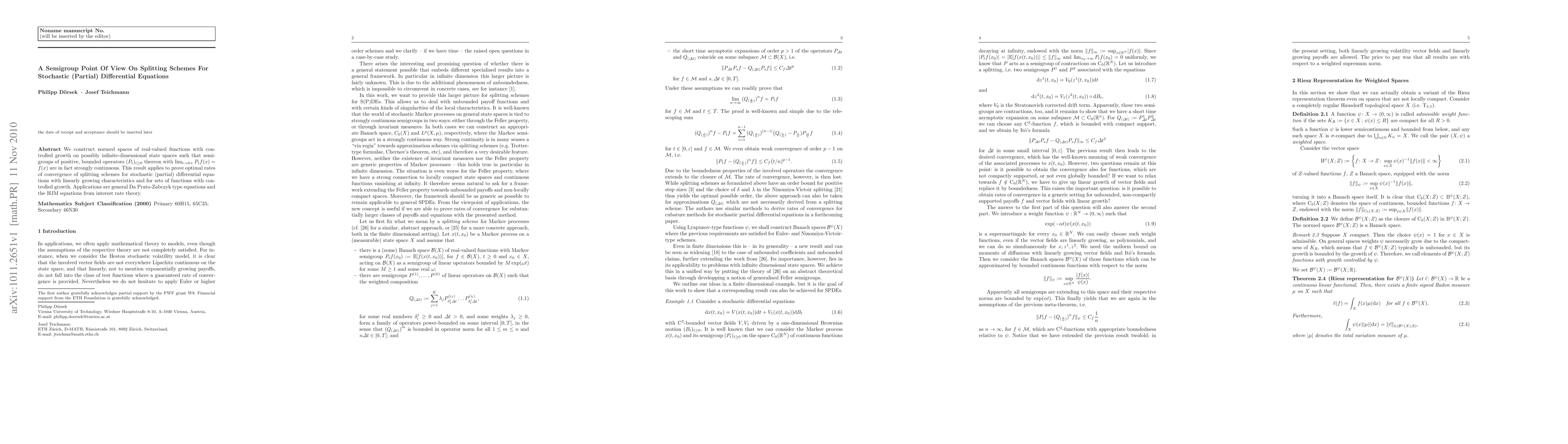 This paper constructs normed spaces for semigroups of operators to prove optimal convergence rates of splitting schemes for stochastic partial differential equations. The approach applies to Da Prato-Zabczyk type equations and HJM equations in interest rate theory.