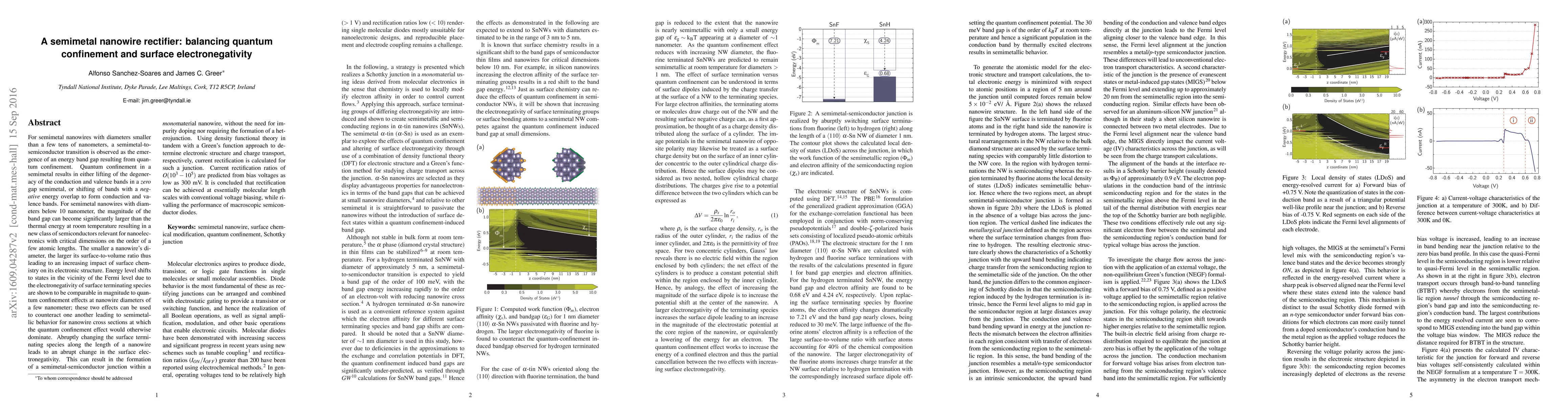 This paper investigates how quantum confinement and surface electronegativity can be balanced in semimetal nanowires to achieve a semimetal-to-semiconductor transition. By controlling the nanowire diameter and surface chemistry, it is possible to create a semimetal-semiconductor junction within a single nanowire, enabling new nanoelectronic applications.