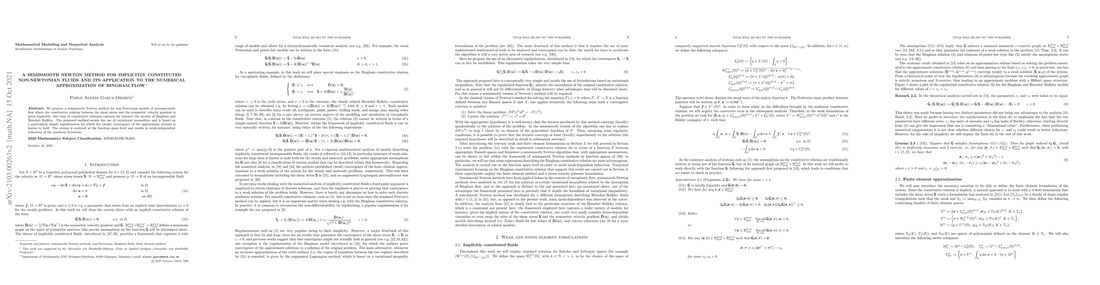 Summary: This paper introduces a semismooth Newton method for solving non-Newtonian fluid flow models, specifically for Bingham flow, avoiding variational inequalities. The method ensures mesh-independent convergence and is based on a simple regularization technique.