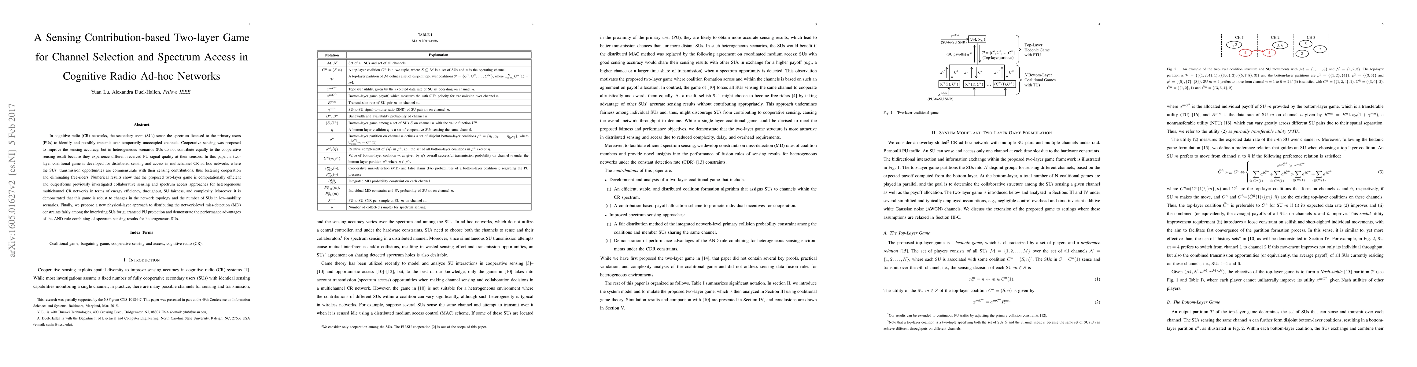 This paper proposes a two-layer coalitional game for spectrum access and channel selection in cognitive radio ad hoc networks, where secondary users' transmission opportunities are based on their sensing contributions, enhancing cooperation and fairness. The approach improves energy efficiency, throughput, and robustness while ensuring primary user protection.