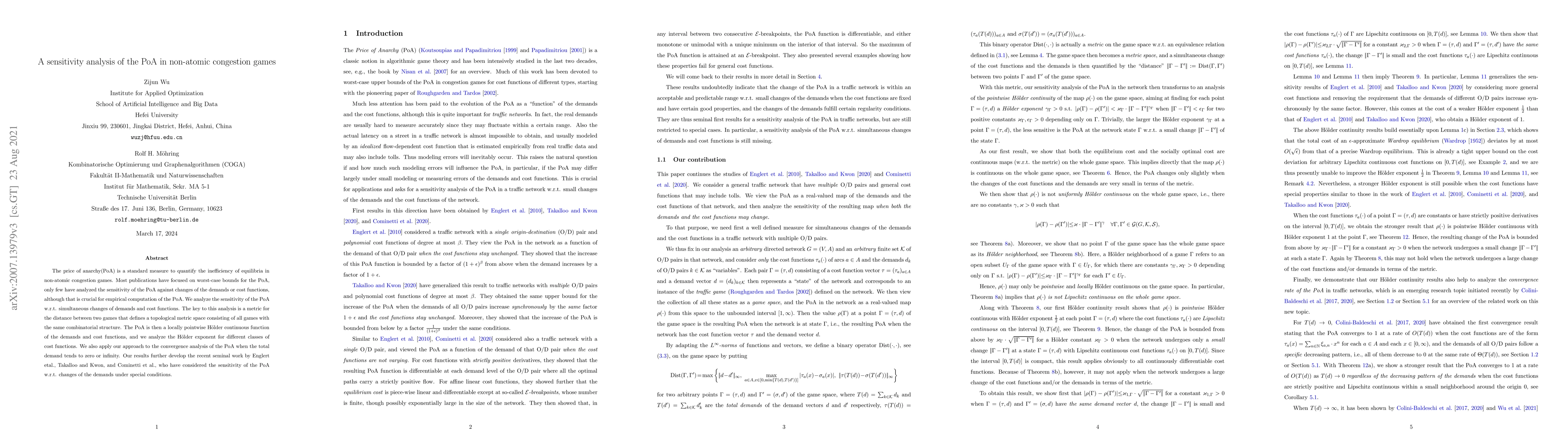 This paper demonstrates that the Price of Anarchy (PoA) in non-atomic congestion games is Hölder continuous concerning combined disturbances in cost functions and demands. It further applies this result to analyze the convergence of the PoA.