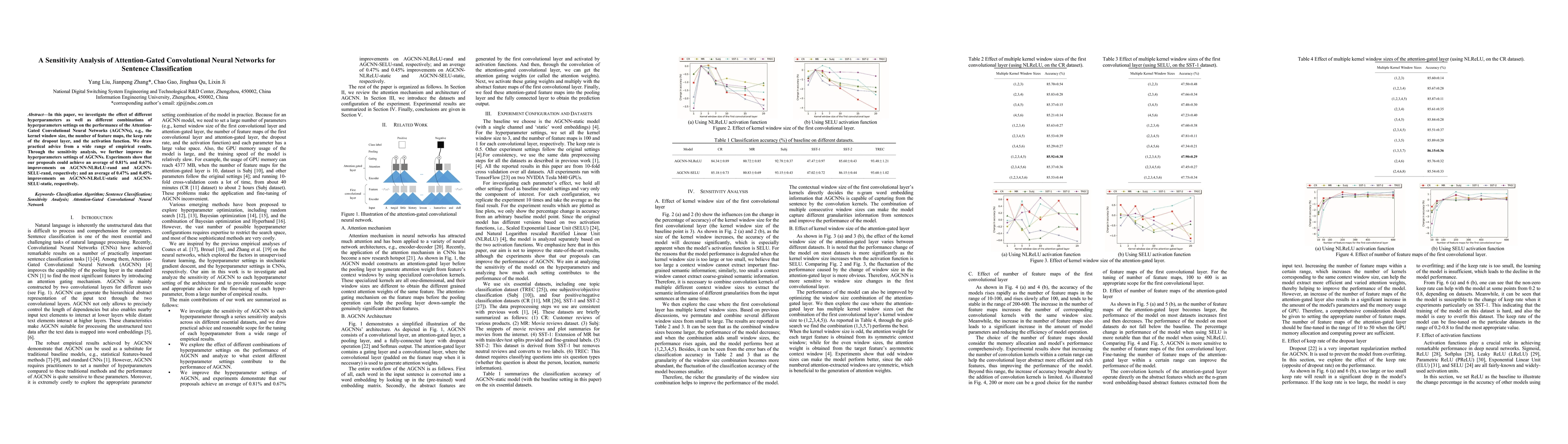 This paper conducts sensitivity analysis on Attention-Gated Convolutional Neural Networks for sentence classification, finding improvements in performance with optimized hyperparameters. It offers practical advice for better model performance.