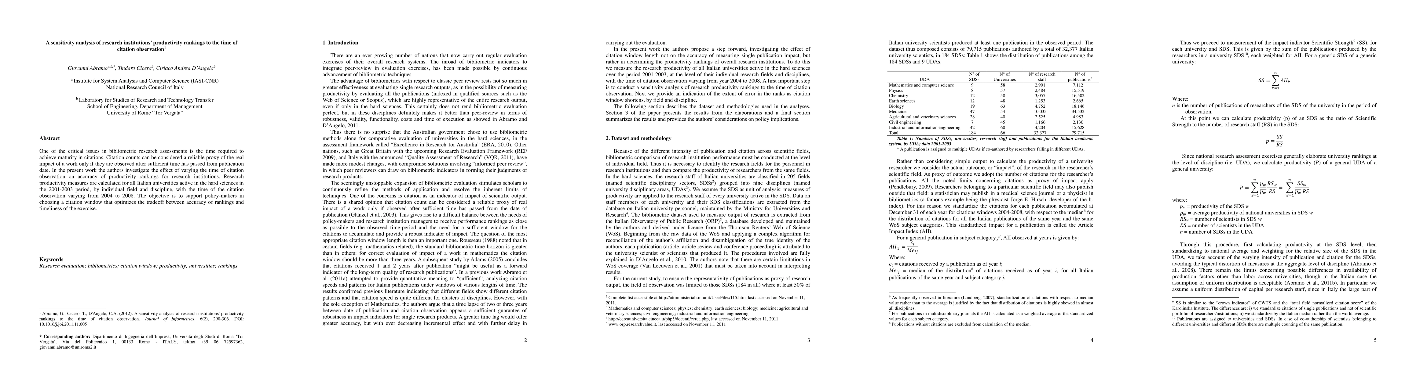 This study examines how different citation observation periods affect the productivity rankings of Italian universities in hard sciences, aiming to determine an optimal citation window that balances ranking accuracy and timeliness for policy-making. Results show varying impacts on rankings depending on the length of the citation observation period.