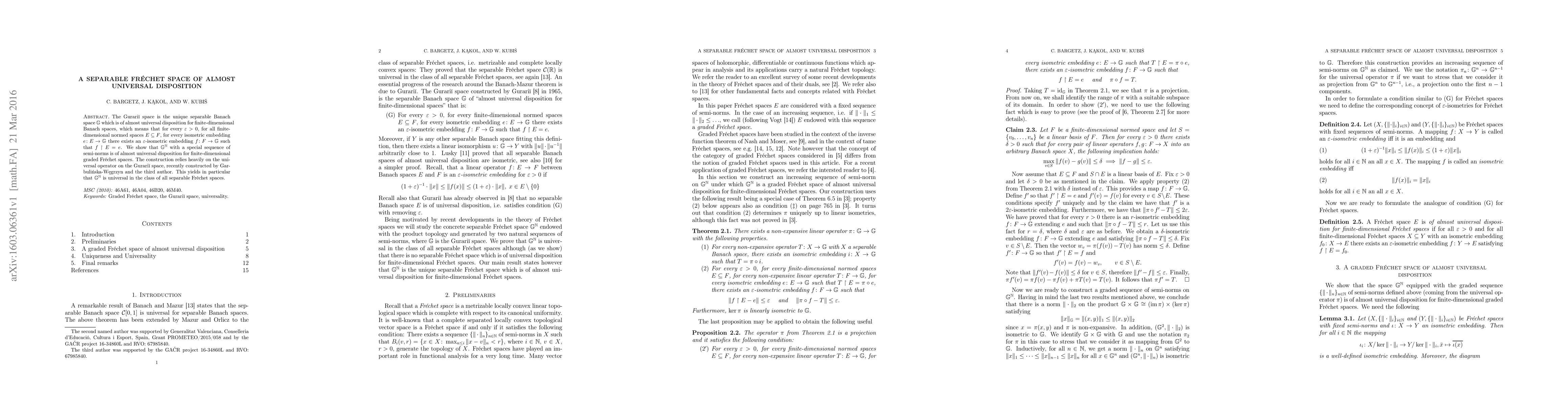 The Gurari\u{\i} space is the unique separable Banach space $\mathbb{G}$ which is of almost universal disposition for finite-dimensional Banach spaces, which means that for every $\varepsilon>0$, for all finite-dimensional normed spaces $E \subseteq F$, for every isometric embedding ${e}\colon{E}\to{\mathbb{G}}$ there exists an $\varepsilon$-isometric embedding ${f}\colon{F}\to{\mathbb{G}}$ such that $f \restriction E = e$. We show that $\mathbb{G}^{\mathbb{N}}$ with a special sequence of semi-norms is of almost universal disposition for finite-dimensional graded Fr\'echet spaces. The construction relies heavily on the universal operator on the Gurari\u{\i} space, recently constructed by Garbuli\'nska-Wegrzyn and the third author. This yields in particular that $\mathbb{G}^{\mathbb{N}}$ is universal in the class of all separable Fr\'echet spaces.