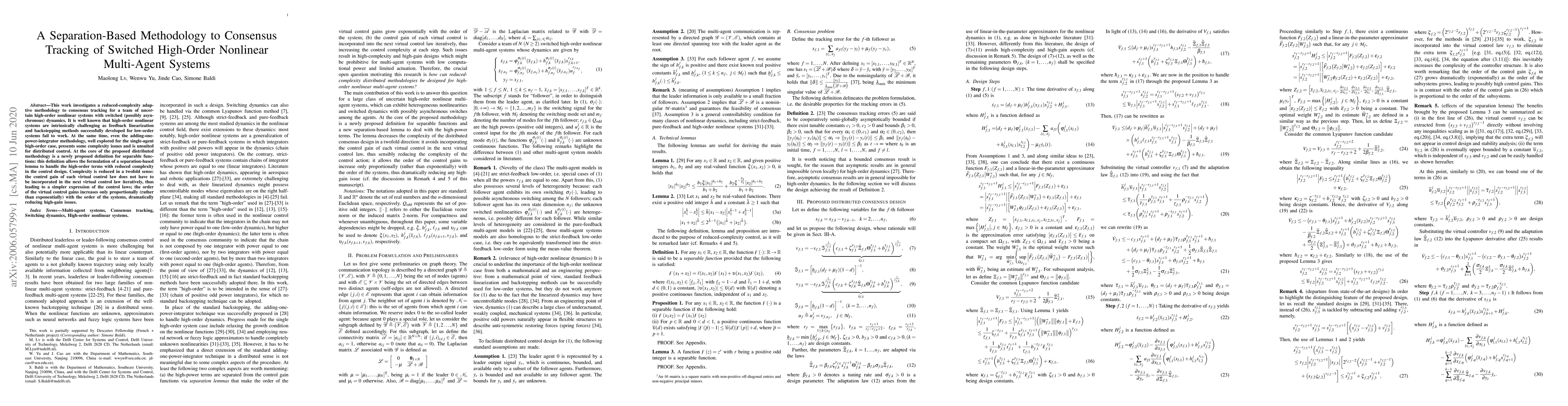 This paper proposes a reduced-complexity adaptive methodology for consensus tracking in high-order nonlinear multi-agent systems with switched dynamics. The approach leverages a new definition of separable functions to simplify control design, reducing both the complexity of control gains and the high-gain issues typically associated with high-order systems.