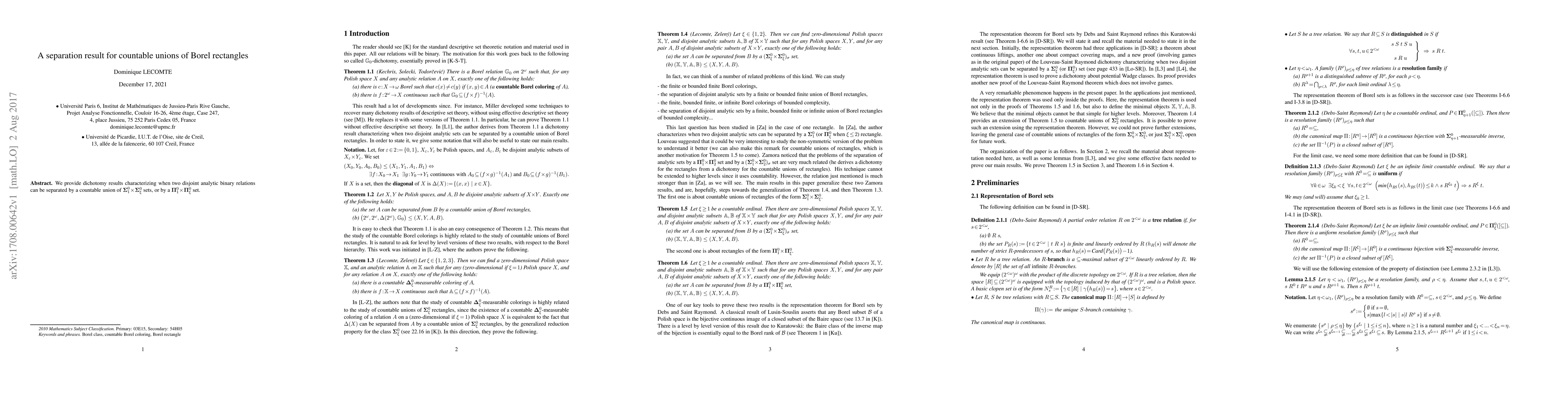 This paper establishes dichotomy results for the separation of two disjoint analytic binary relations using either countable unions of specific Borel sets or a single product Borel set. The focus is on the conditions under which such separations are possible.