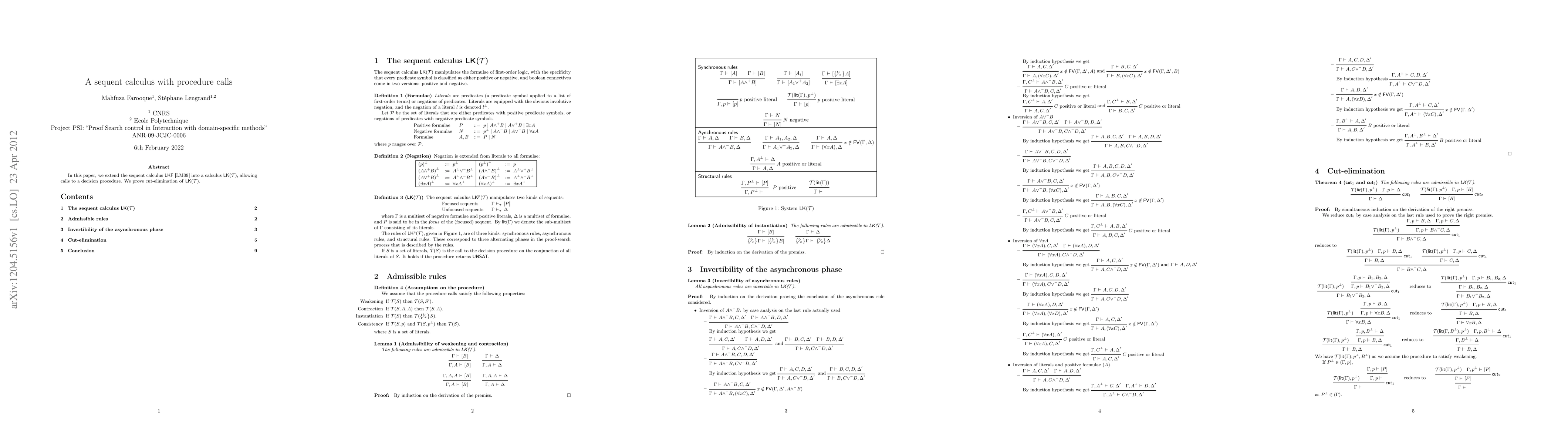 This paper extends the sequent calculus LKF to LK(T), enabling calls to a decision procedure, and proves the cut-elimination property for the new system.
