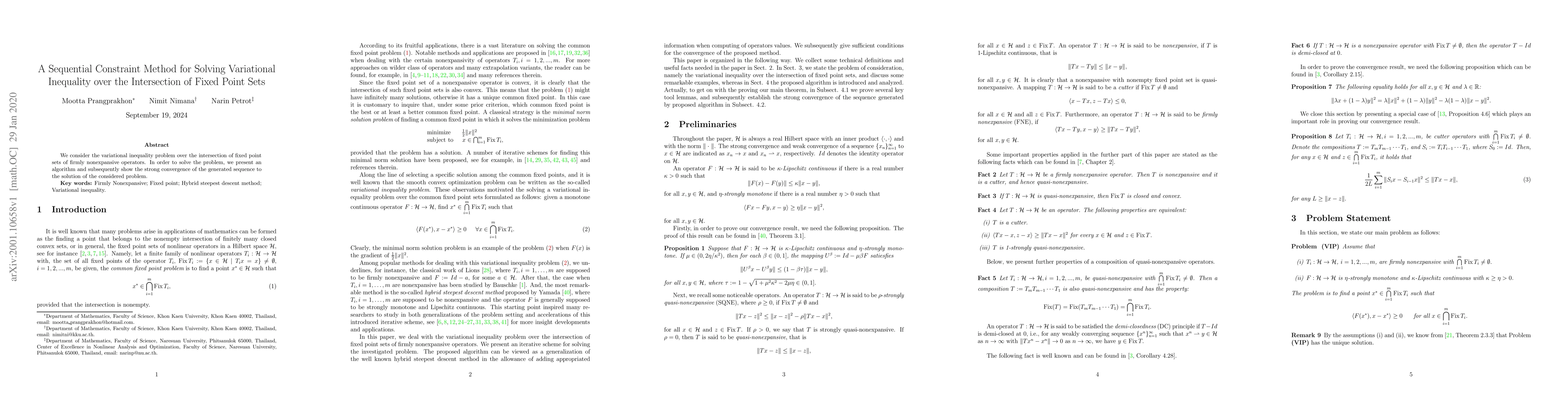 This paper proposes a sequential constraint method to solve variational inequality problems over the intersection of fixed point sets of firmly nonexpansive operators, and demonstrates the strong convergence of the algorithm to the correct solution.