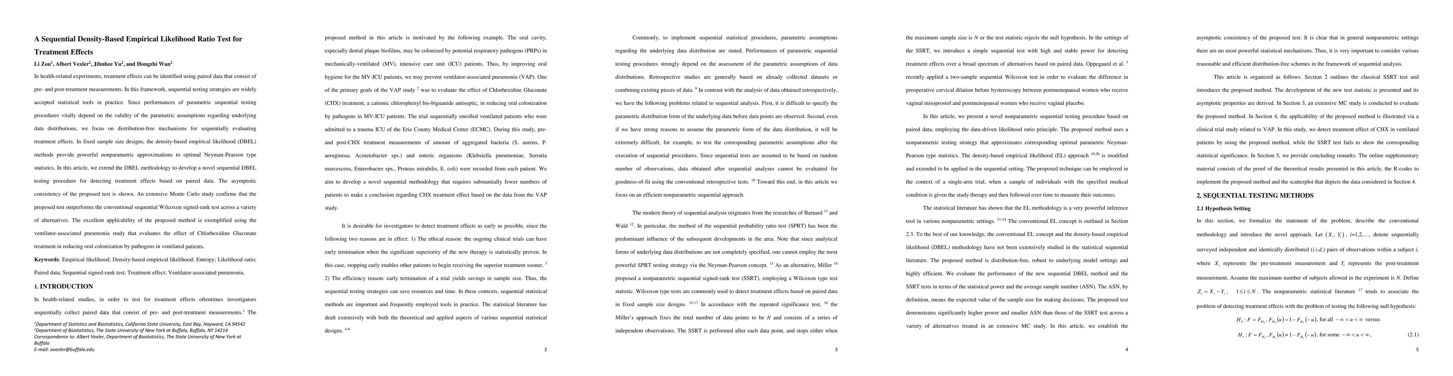 This paper proposes a novel sequential density-based empirical likelihood ratio test for evaluating treatment effects using paired pre- and post-treatment data, demonstrating superior performance over conventional methods in Monte Carlo studies and applied to a pneumonia treatment study. The method is distribution-free, enhancing its robustness and applicability.