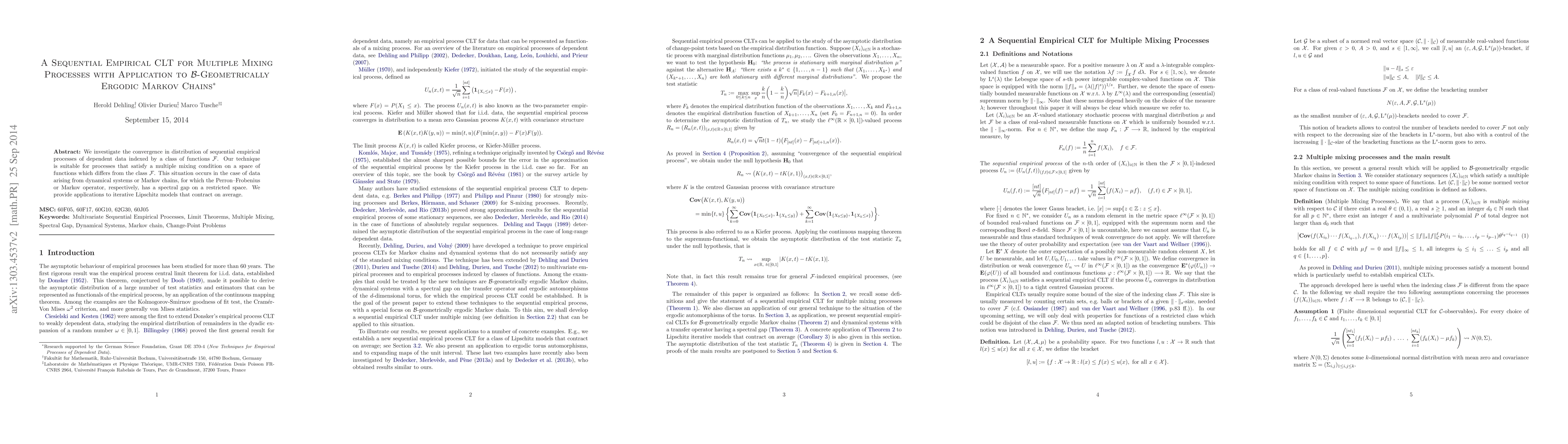 We investigate the convergence in distribution of sequential empirical processes of dependent data indexed by a class of functions F. Our technique is suitable for processes that satisfy a multiple mixing condition on a space of functions which differs from the class F. This situation occurs in the case of data arising from dynamical systems or Markov chains, for which the Perron--Frobenius or Markov operator, respectively, has a spectral gap on a restricted space. We provide applications to iterative Lipschitz models that contract on average.