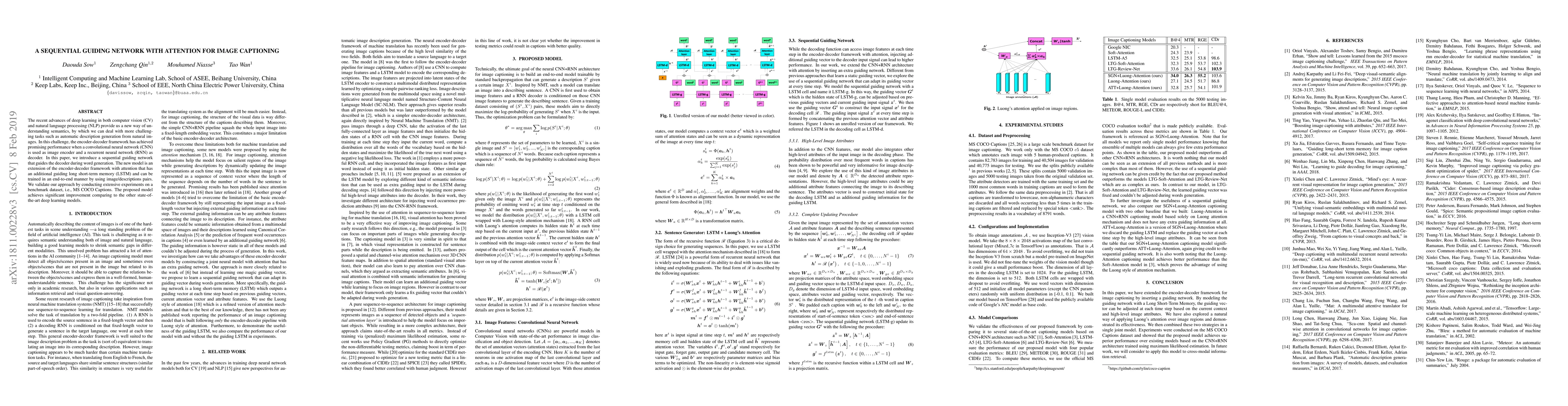 The recent advances of deep learning in both computer vision (CV) and natural language processing (NLP) provide us a new way of understanding semantics, by which we can deal with more challenging tasks such as automatic description generation from natural images. In this challenge, the encoder-decoder framework has achieved promising performance when a convolutional neural network (CNN) is used as image encoder and a recurrent neural network (RNN) as decoder. In this paper, we introduce a sequential guiding network that guides the decoder during word generation. The new model is an extension of the encoder-decoder framework with attention that has an additional guiding long short-term memory (LSTM) and can be trained in an end-to-end manner by using image/descriptions pairs. We validate our approach by conducting extensive experiments on a benchmark dataset, i.e., MS COCO Captions. The proposed model achieves significant improvement comparing to the other state-of-the-art deep learning models.