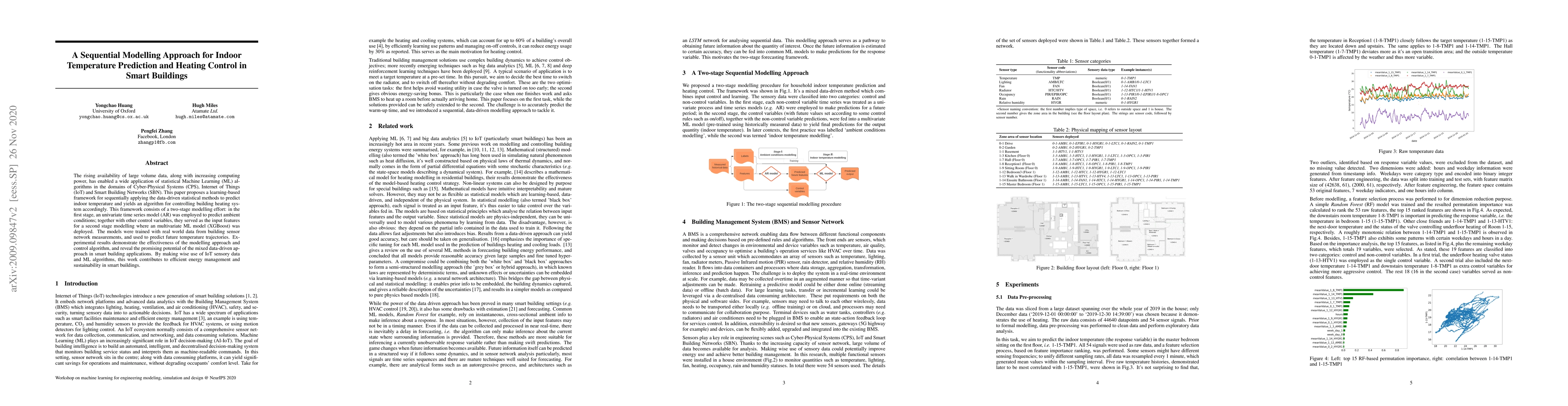 A machine learning approach predicts indoor temperature and controls heating systems in smart buildings with high accuracy, using a two-stage model that combines univariate time series prediction with multivariate modeling.