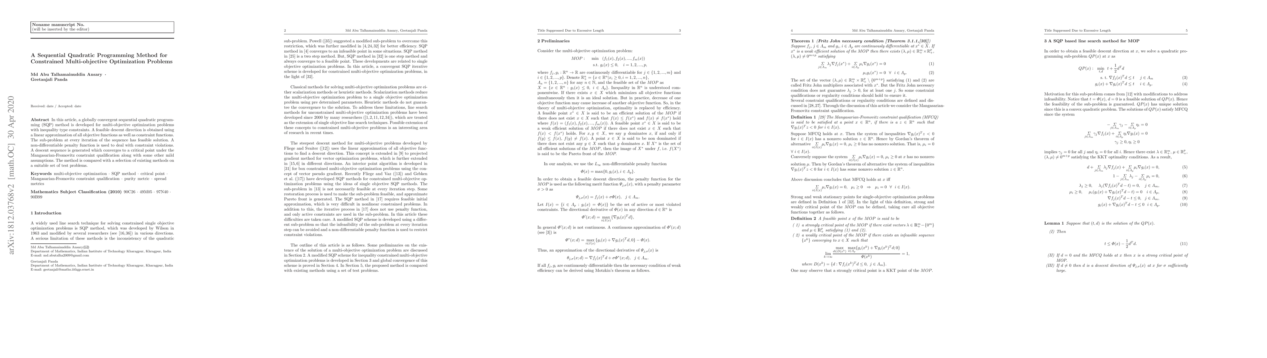 This paper introduces a globally convergent sequential quadratic programming method for solving multi-objective optimization problems with inequality constraints. It provides a new approach to address constraint violations using a non-differentiable penalty function.