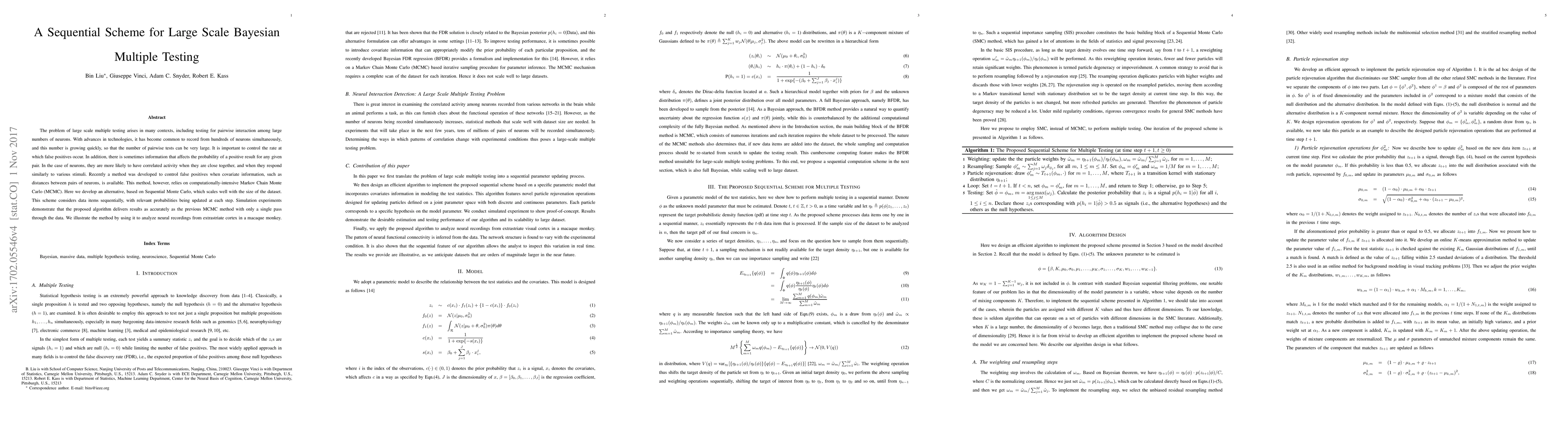 A new method for controlling false positives in large-scale Bayesian multiple testing uses Sequential Monte Carlo, a more efficient approach that scales well with dataset size, offering comparable accuracy to existing methods.
