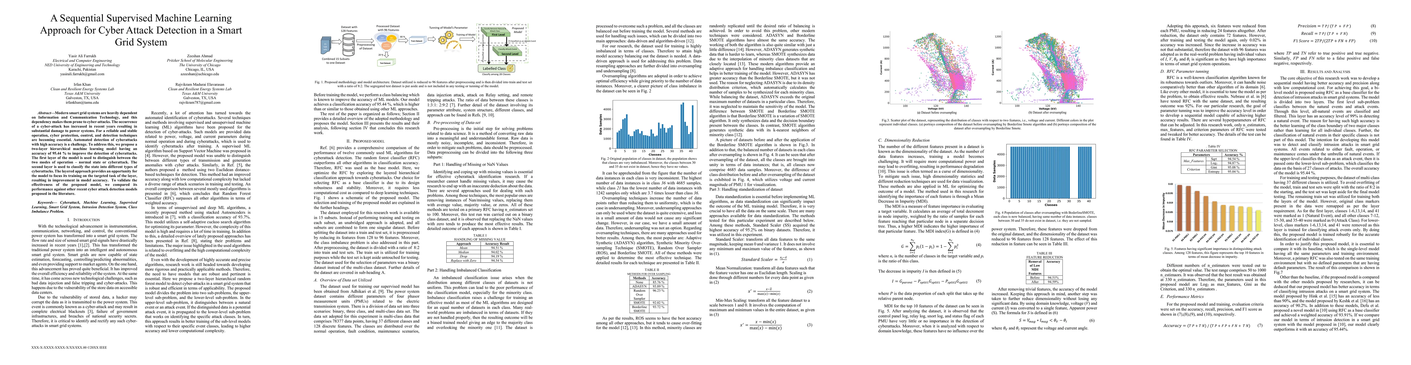 This paper proposes a two-layer hierarchical machine learning model for detecting cyberattacks in smart grid systems, achieving 95.44% accuracy. The first layer distinguishes between normal and attack states, while the second layer classifies different types of cyberattacks, enhancing model precision through focused training.