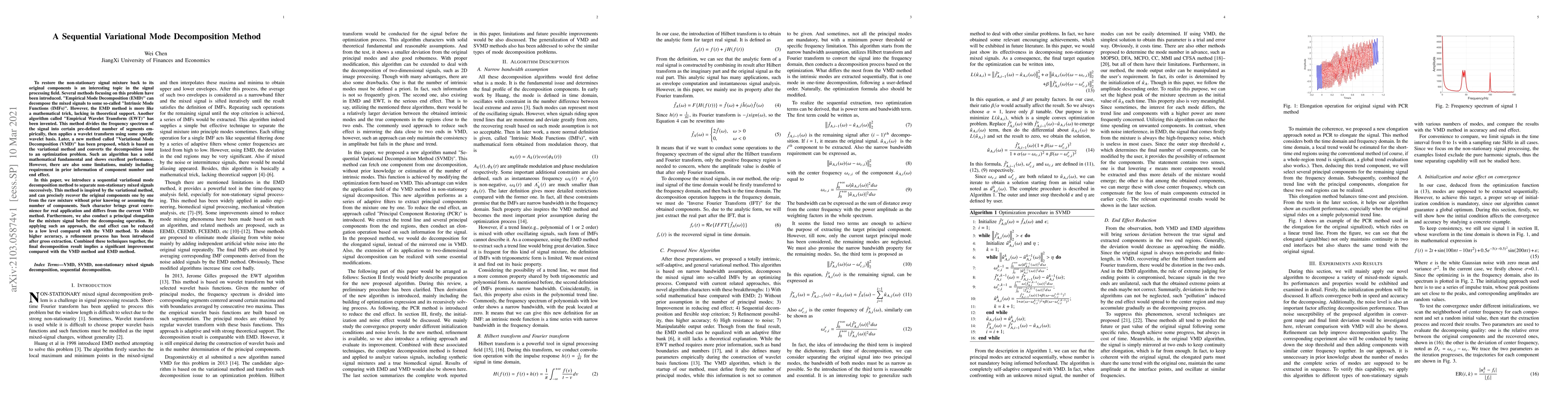 This paper proposes a sequential variational mode decomposition method to decompose non-stationary mixed signals iteratively, determining the mode number during the process without prior assumptions. It also incorporates principal elongation and refinement techniques to enhance accuracy and reduce end effects, showing significant improvements over existing VMD and EMD methods.
