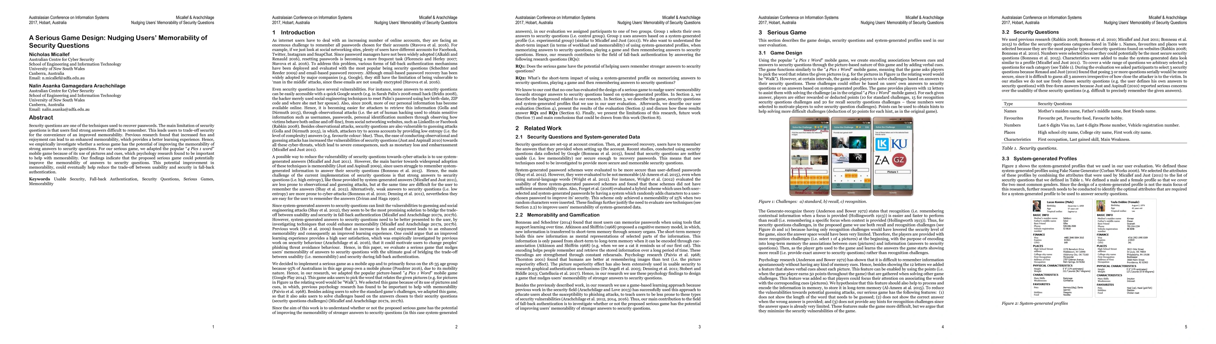 Security questions are one of the techniques used to recover passwords. The main limitation of security questions is that users find strong answers difficult to remember. This leads users to trade-off security for the convenience of an improved memorability. Previous research found that increased fun and enjoyment can lead to an enhanced memorability, which provides a better learning experience. Hence, we empirically investigate whether a serious game has the potential of improving the memorability of strong answers to security questions. For our serious game, we adapted the popular "4 Pics 1 word" mobile game because of its use of pictures and cues, which psychology research found to be important to help with memorability. Our findings indicate that the proposed serious game could potentially improve the memorability of answers to security questions. This potential improvement in memorability, could eventually help reduce the trade-off between usability and security in fall-back authentication.