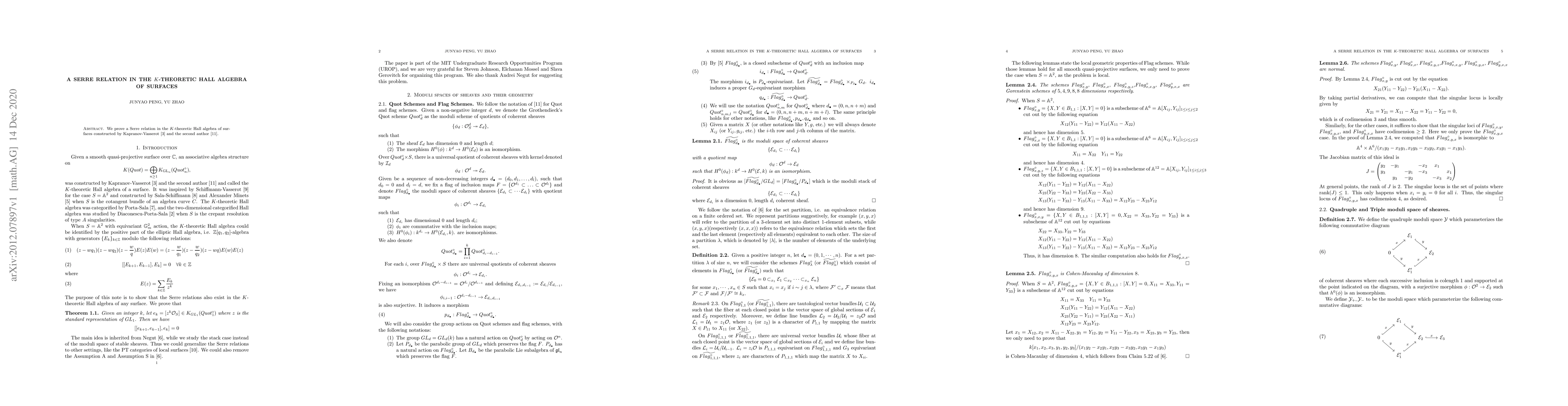 We prove a Serre relation in the $K$-theoretic Hall algebra of surfaces constructed by Kapranov-Vasserot and the second author.