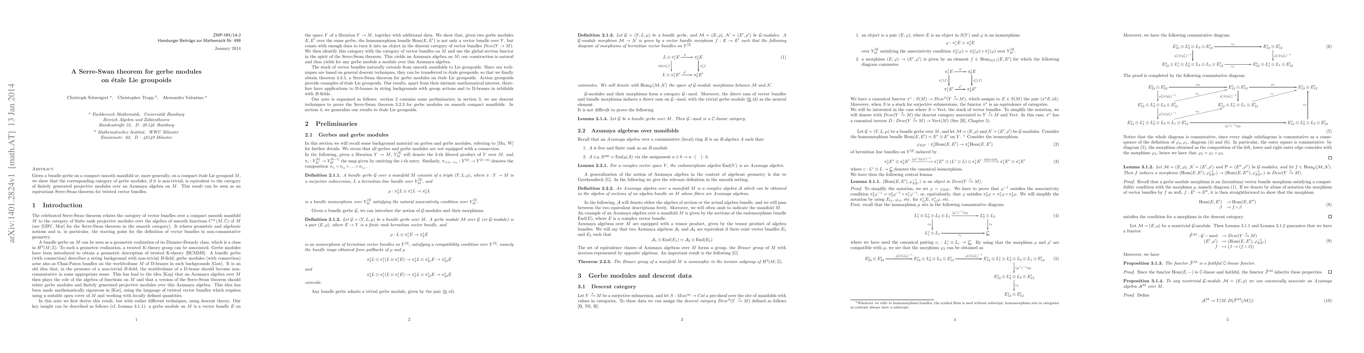 This paper proves that for gerbe modules over a compact \'etale Lie groupoid, the non-trivial category of such modules is equivalent to finitely generated projective modules over an Azumaya algebra, establishing an equivariant Serre-Swan theorem for twisted vector bundles.