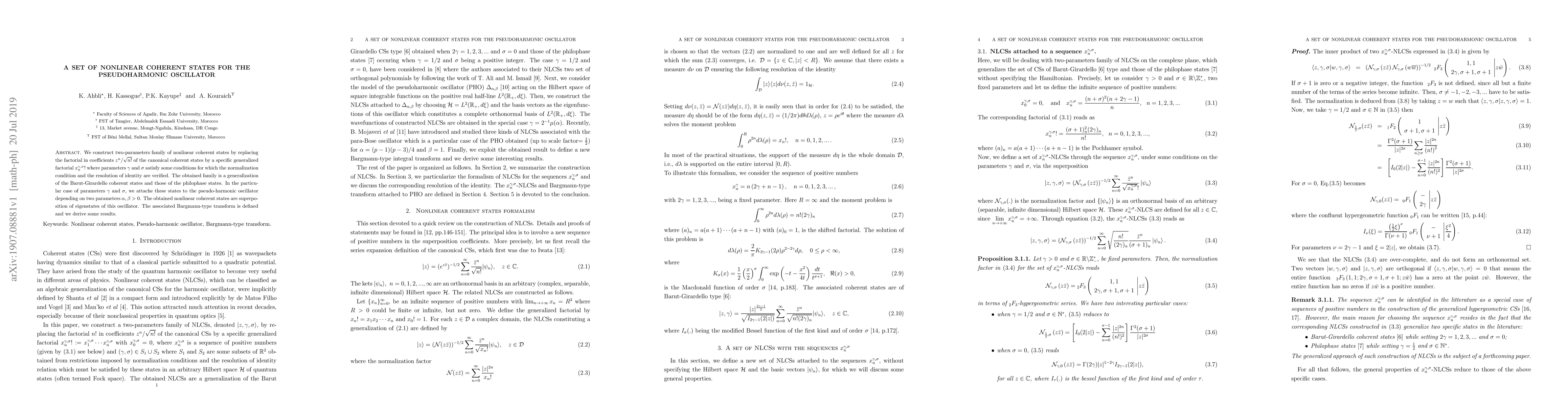 We construct two-parameters family of nonlinear coherent states by replacing the factorial in coefficients $z^n/\sqrt{n!}$ of the canonical coherent states by a specific generalized factorial $x_n^{\gamma,\sigma}!$ where parameters $\gamma$ and $\sigma$ satisfy some conditions for which the normalization condition and the resolution of identity are verified. The obtained family is a generalization of the Barut-Girardello coherent states and those of the philophase states. In the particular case of parameters $\gamma$ and $\sigma$, we attache these states to the pseudo-harmonic oscillator depending on two parameters $\alpha,\beta> 0$. The obtained nonlinear coherent states are superposition of eigenstates of this oscillator. The associated Bargmann-type transform is defined and we derive some results.
