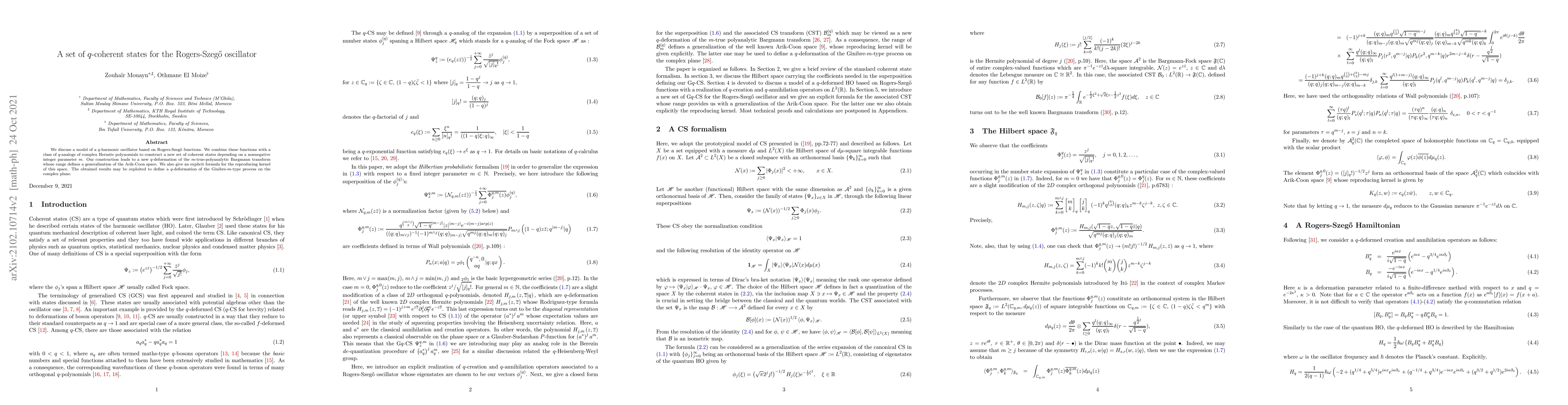 This paper constructs a new set of $q$-coherent states for a $q$-harmonic oscillator using Rogers-Szegő functions and $q$-analogs of complex Hermite polynomials, leading to a $q$-deformed Bargmann transform and a generalized Arik-Coon space, with explicit formulas for its reproducing kernel.