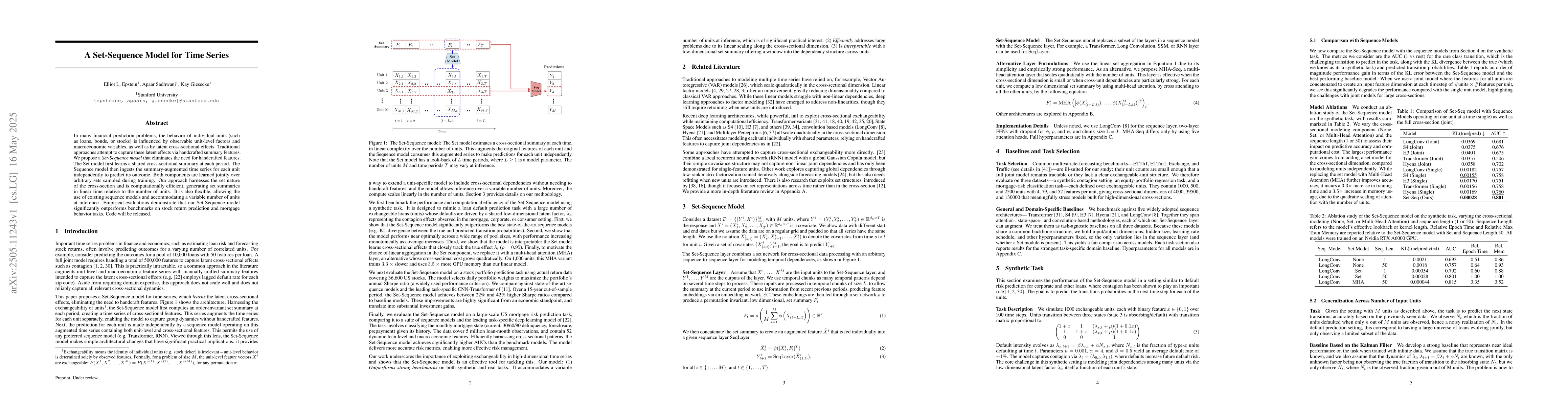 In many financial prediction problems, the behavior of individual units (such as loans, bonds, or stocks) is influenced by observable unit-level factors and macroeconomic variables, as well as by latent cross-sectional effects. Traditional approaches attempt to capture these latent effects via handcrafted summary features. We propose a Set-Sequence model that eliminates the need for handcrafted features. The Set model first learns a shared cross-sectional summary at each period. The Sequence model then ingests the summary-augmented time series for each unit independently to predict its outcome. Both components are learned jointly over arbitrary sets sampled during training. Our approach harnesses the set nature of the cross-section and is computationally efficient, generating set summaries in linear time relative to the number of units. It is also flexible, allowing the use of existing sequence models and accommodating a variable number of units at inference. Empirical evaluations demonstrate that our Set-Sequence model significantly outperforms benchmarks on stock return prediction and mortgage behavior tasks. Code will be released.