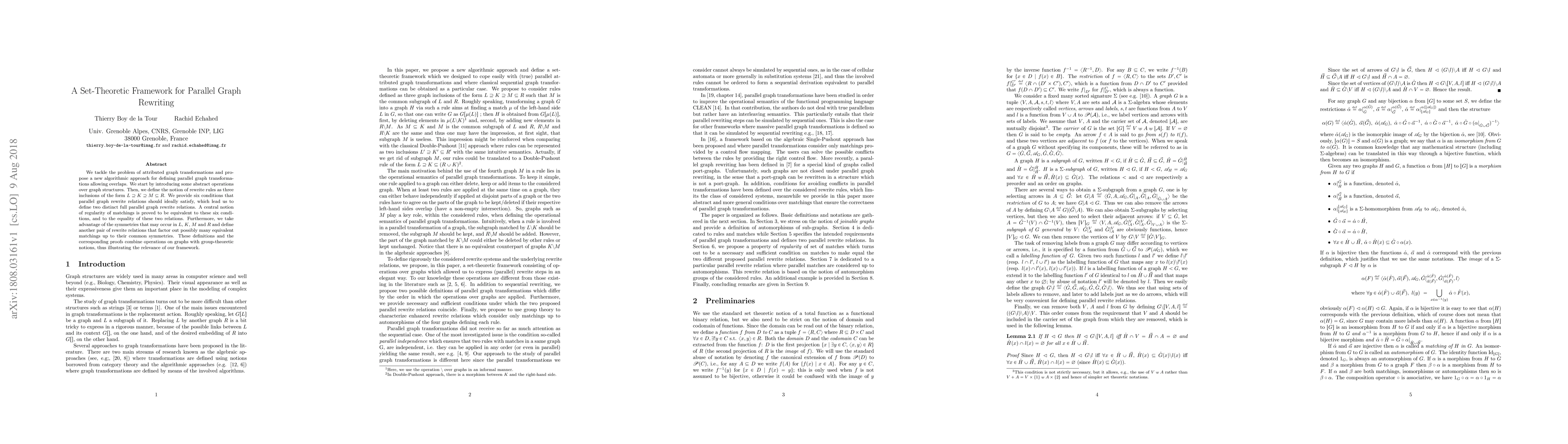 Researchers propose a new set-theoretic framework for parallel graph transformations, introducing rules for defining and analyzing parallel graph rewrite relations, with implications for operations on graphs and group-theoretic notions.