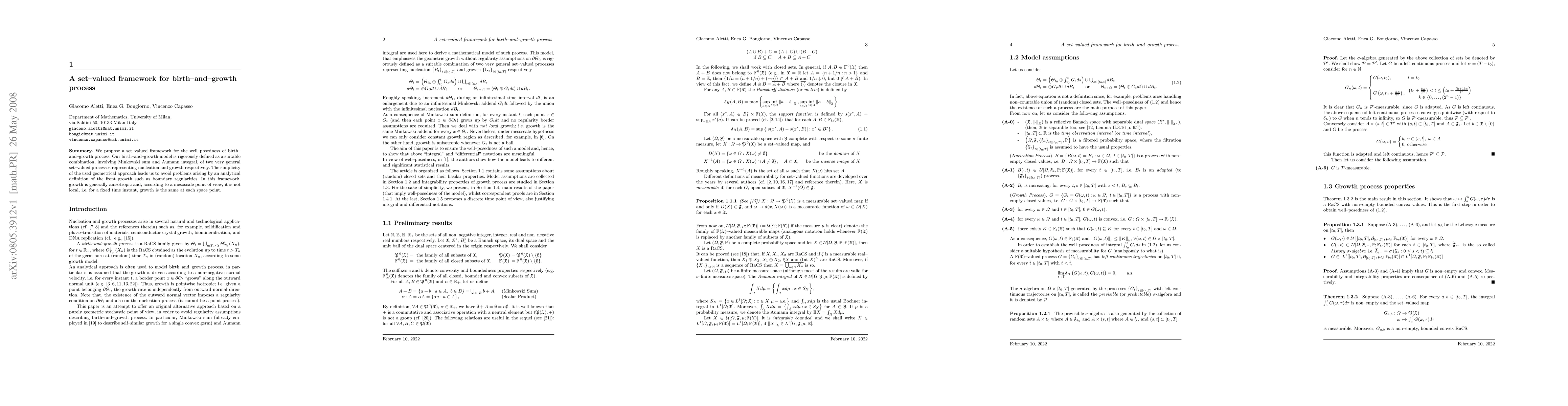 This paper introduces a set-valued framework using Minkowski sum and Aumann integral to define a birth-and-growth process, avoiding analytical boundary issues through a geometric approach. The framework accommodates anisotropic and non-local growth at a mesoscale level.