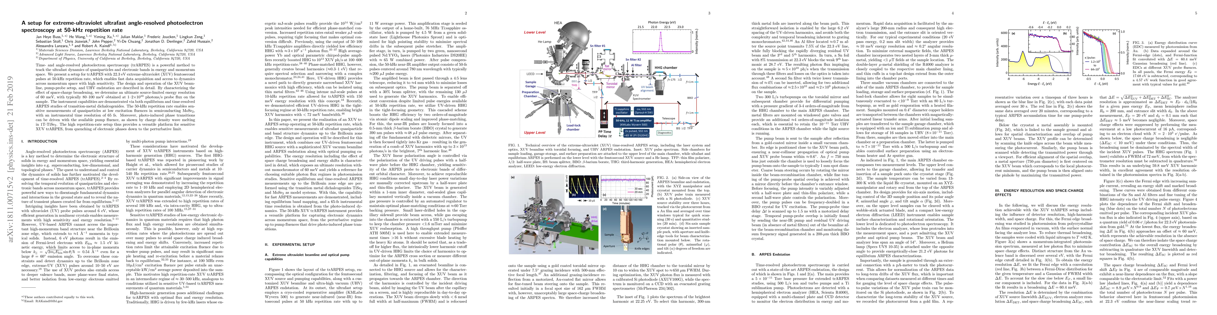 This paper details a high-repetition-rate (50-kHz) extreme-ultraviolet (XUV) ultrafast angle-resolved photoelectron spectroscopy (trARPES) setup, achieving 22.3 eV femtosecond pulses. The setup enables fast data acquisition and high-sensitivity studies of quasiparticle dynamics and electronic bands, demonstrated by time-resolved ARPES studies of transition-metal dichalcogenides.