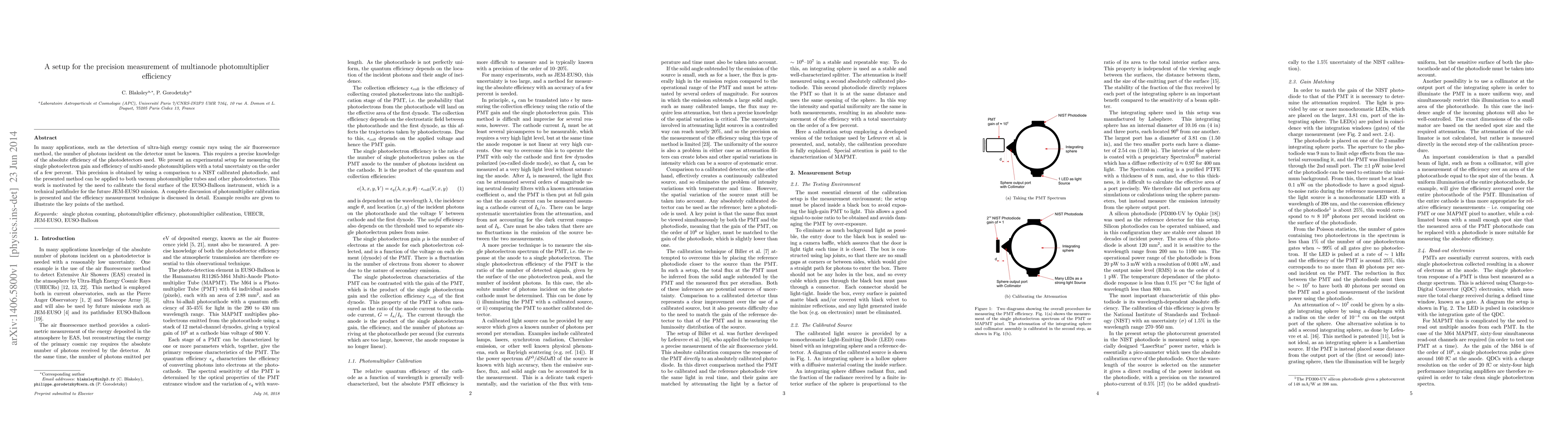 Researchers developed a precision method to measure the efficiency of multianode photomultiplier tubes with an accuracy of a few percent, enabling calibration for cosmic ray detection applications.